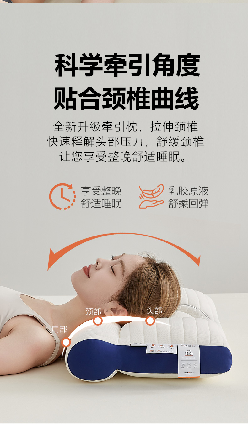 (总)乐可 2025新款分区两用牵引枕全棉双向枕 枕头枕芯,分区两用牵引枕