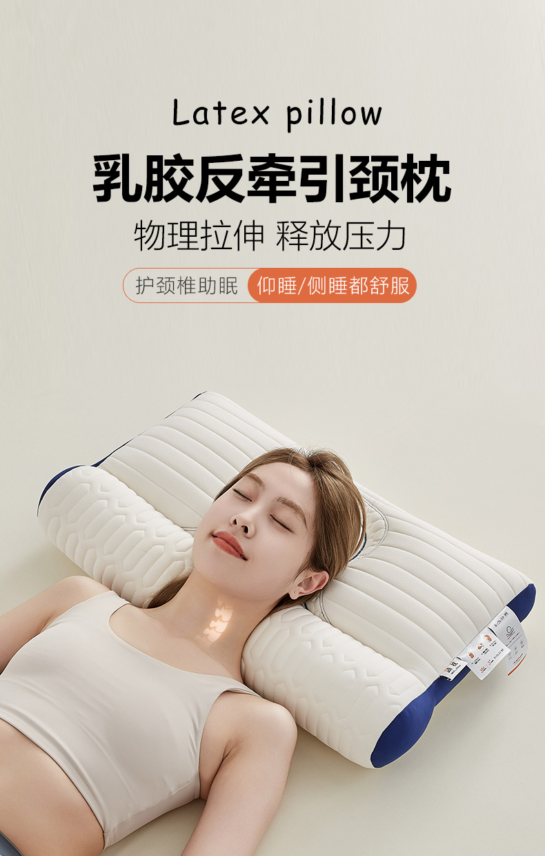 (总)乐可 2026新款乳胶日系牵引枕反牵引枕头枕芯,日系牵引枕-灰,日系牵引枕-橘,日系牵引枕-蓝