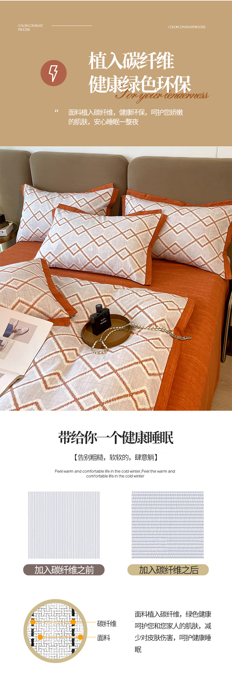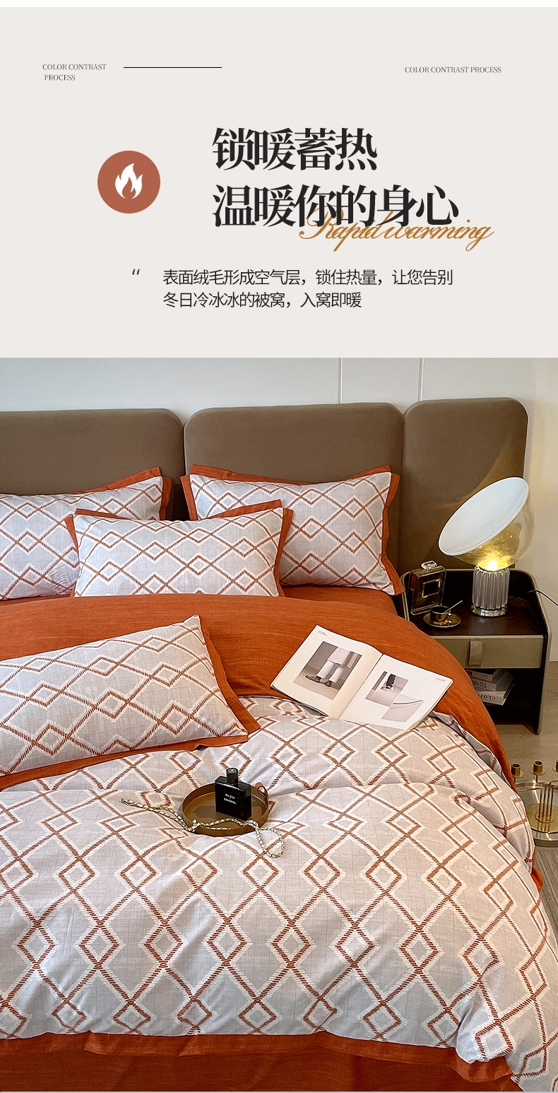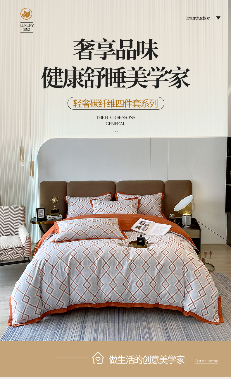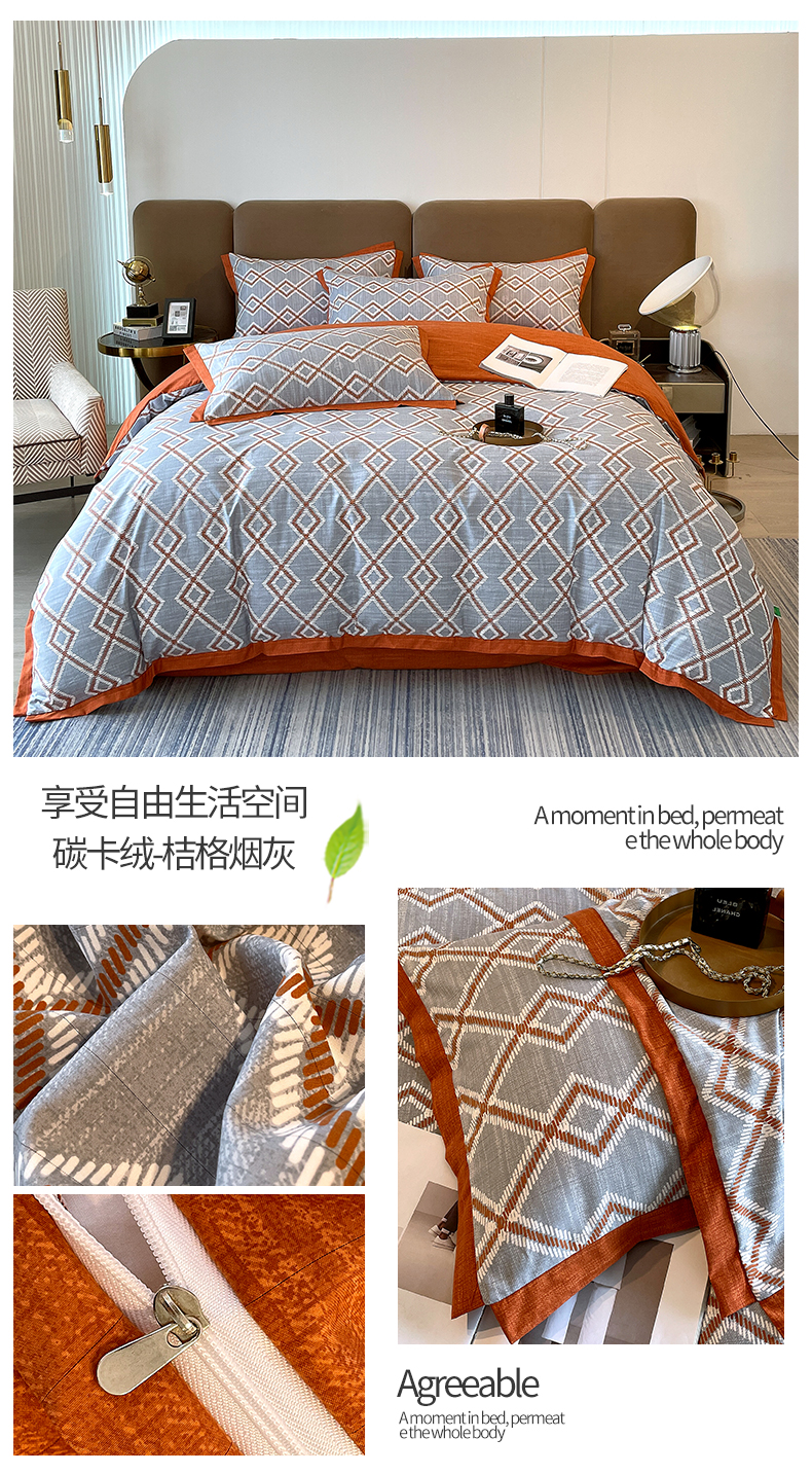 商品名称:恩和家纺 2026新款森能量碳纤维环保四件套系列 碳卡绒-桔格雅灰