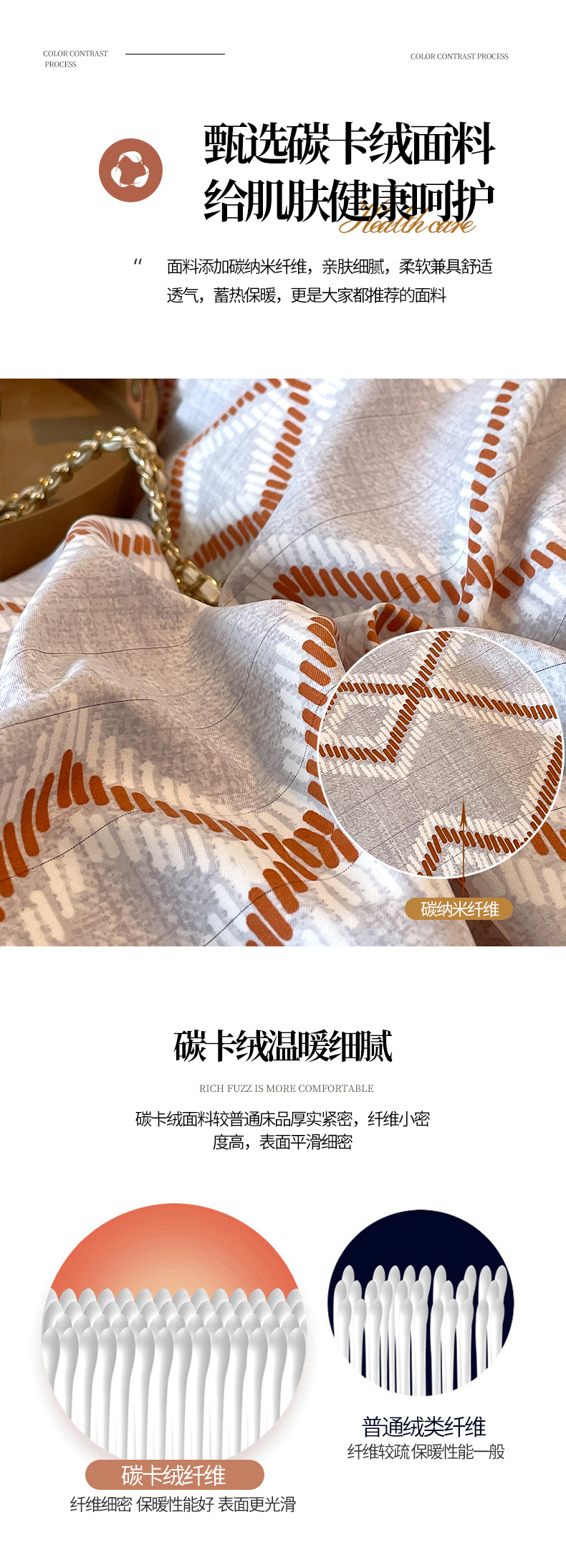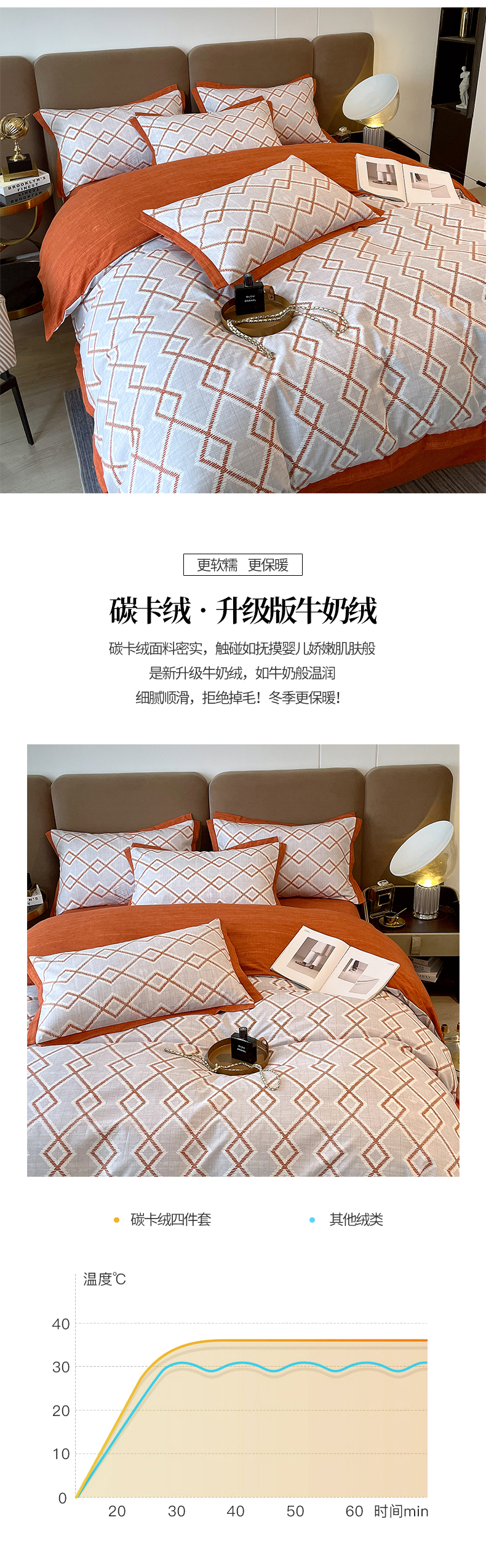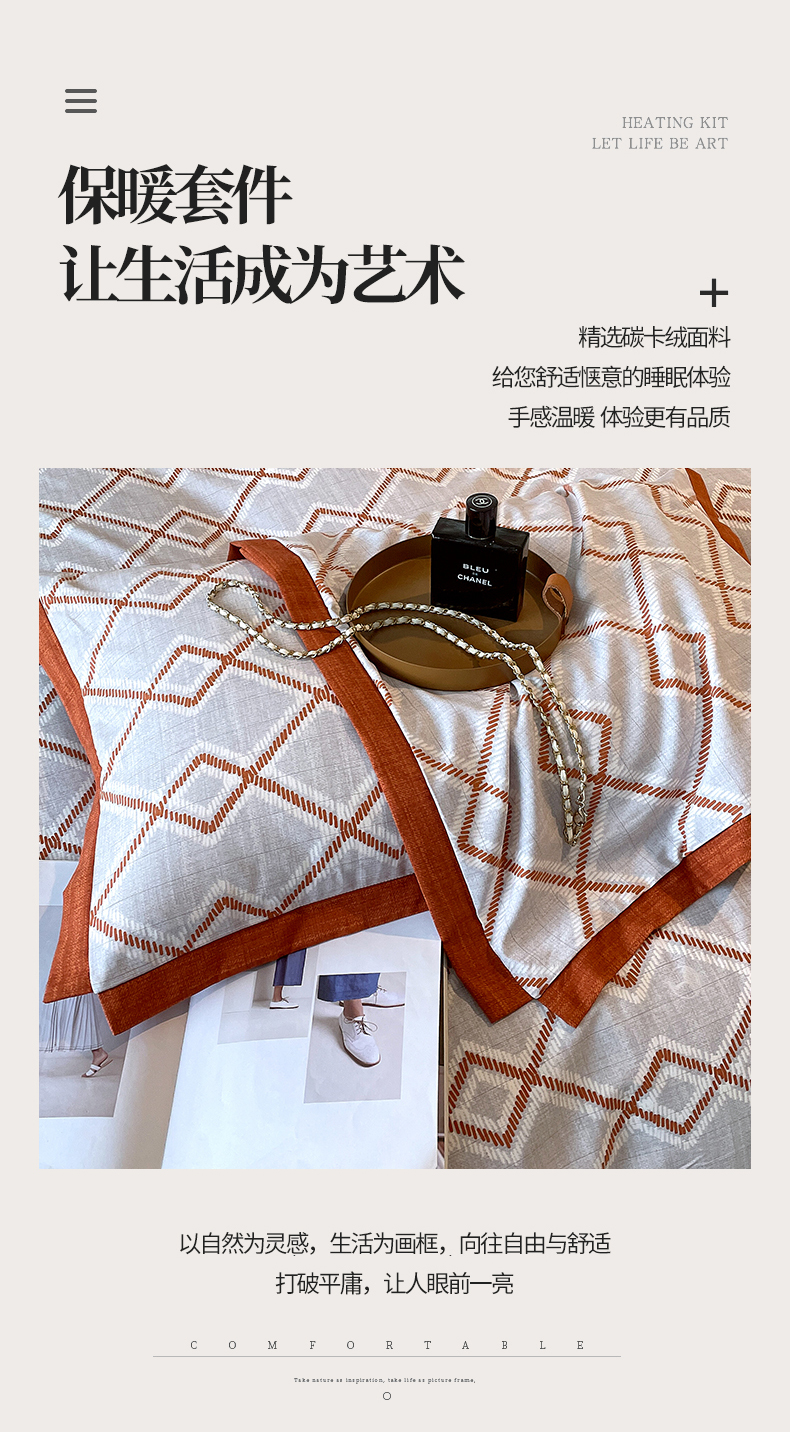 商品名称:恩和家纺 2026新款森能量碳纤维环保四件套系列 碳卡绒-桔格雅灰
