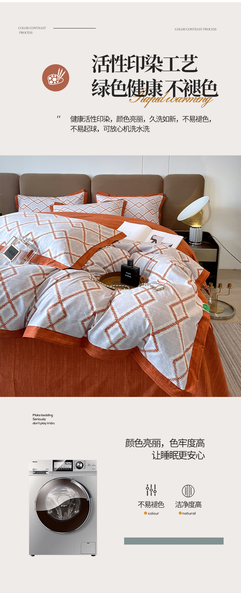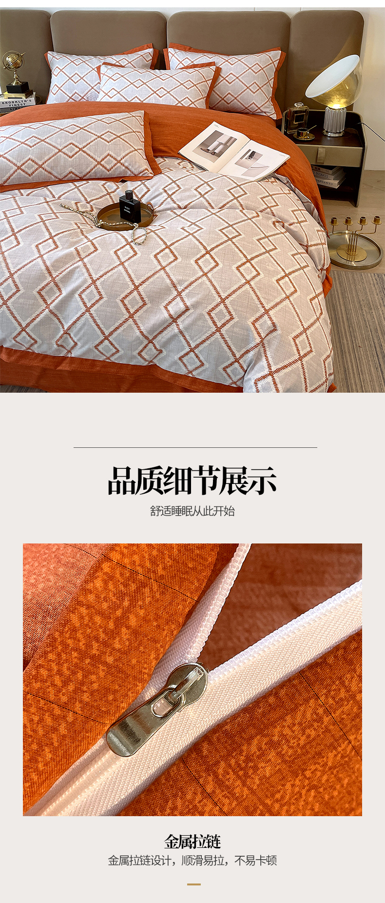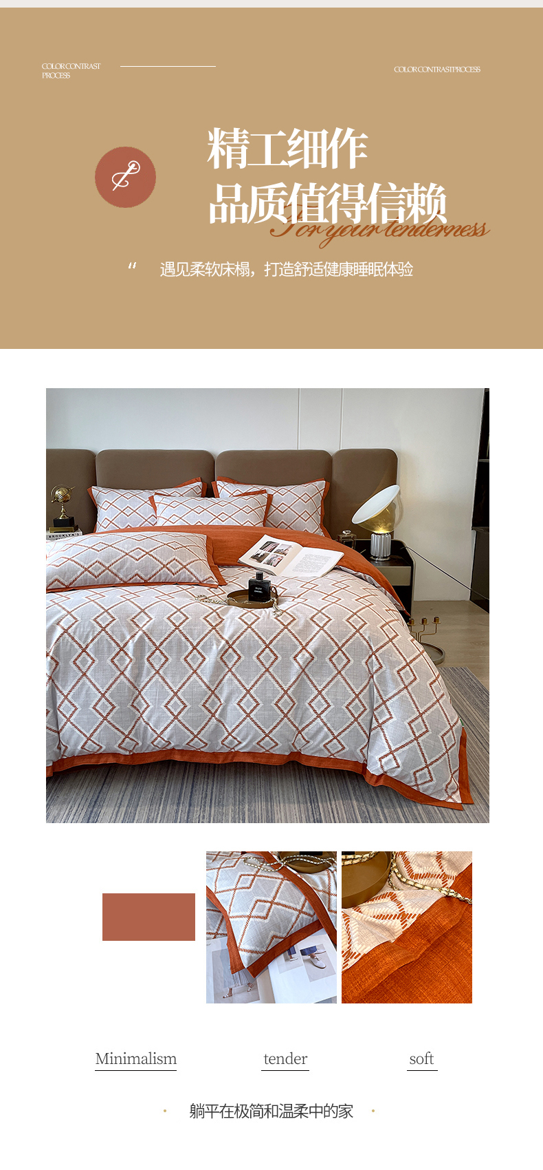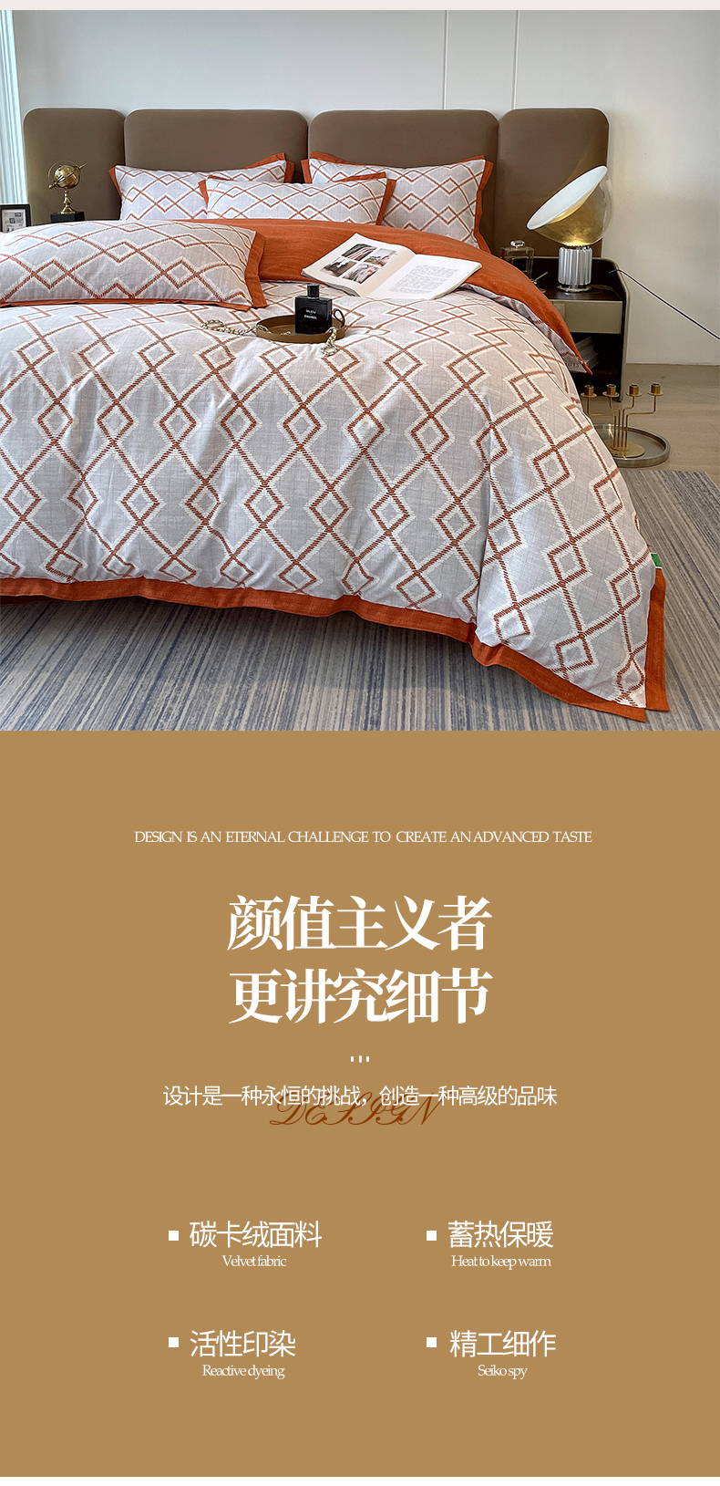 商品名称:恩和家纺 2026新款森能量碳纤维环保四件套系列 碳卡绒-桔格雅灰