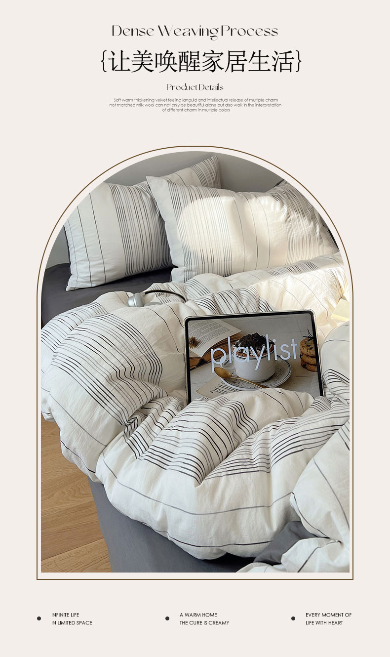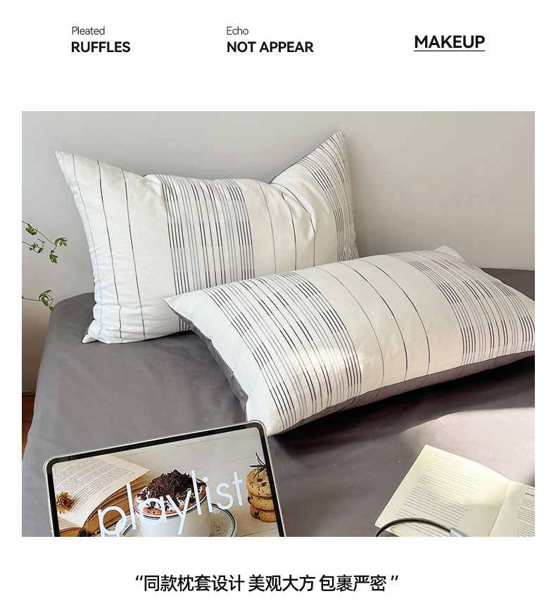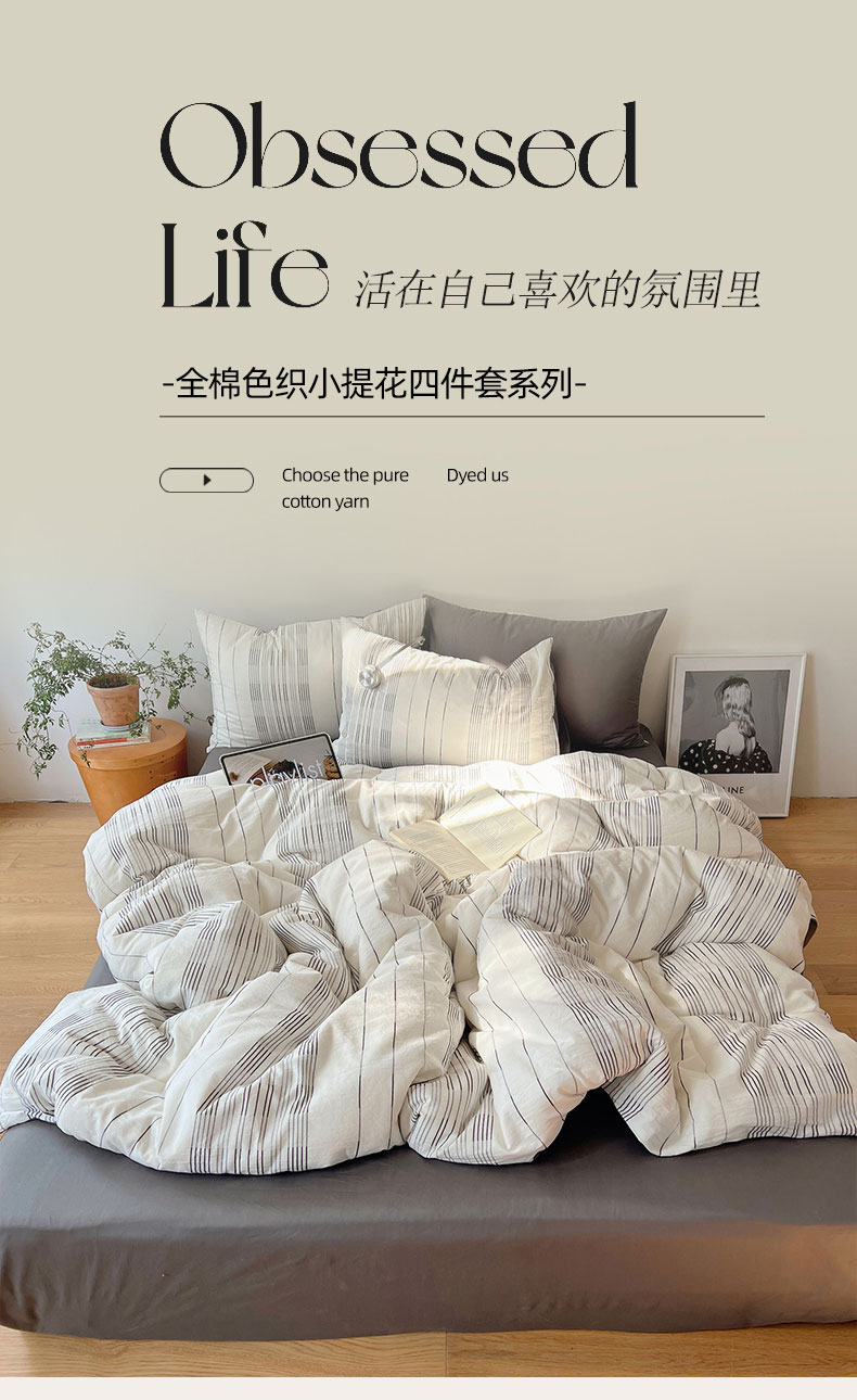 简宜家居(朝初家纺) 2026新款全棉色织小提花简纹系列四件套 简纹-低调灰