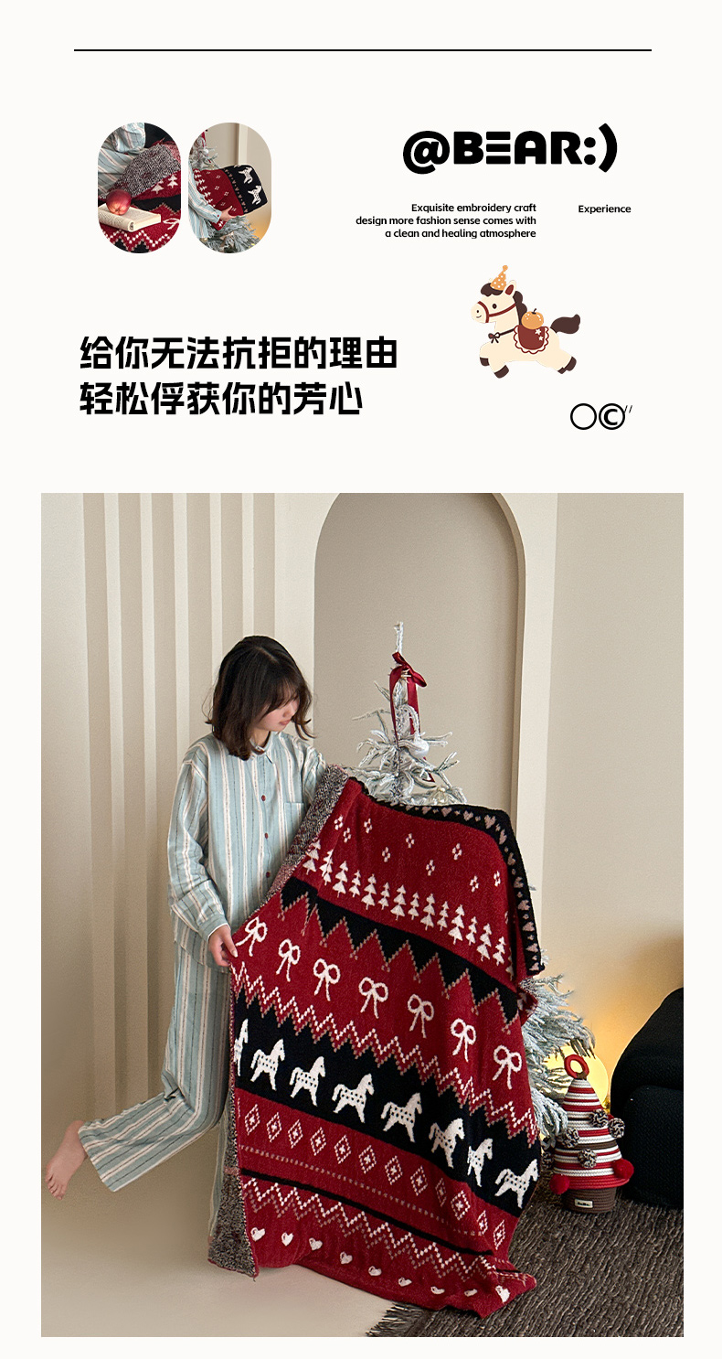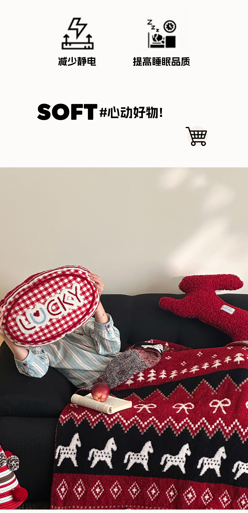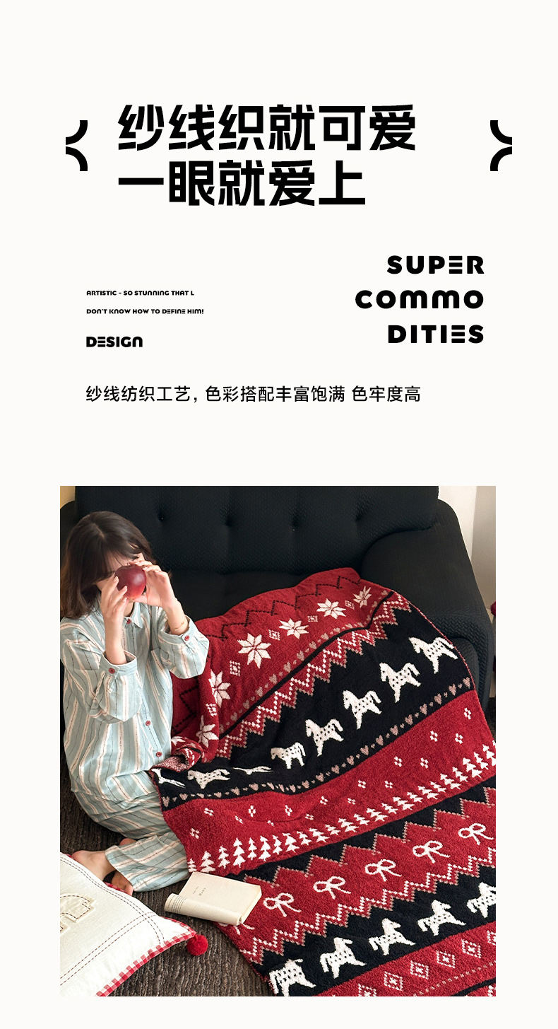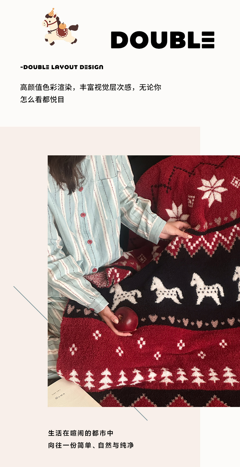 商品名称:RYB红黄兰 2026新款设计师原创多功能针织半边绒毛毯午休毯盖毯加厚毯子 费尔岛小马