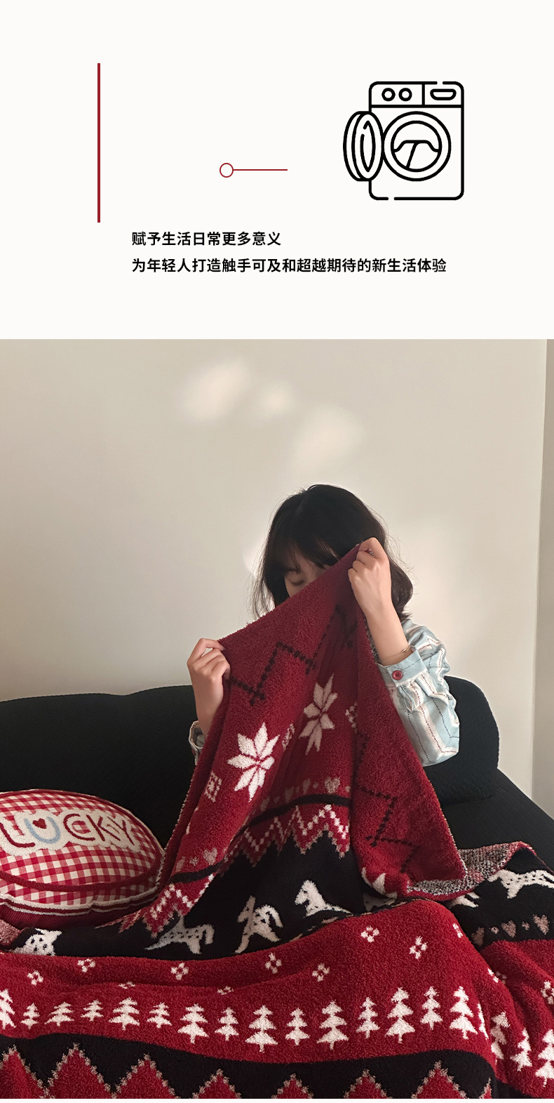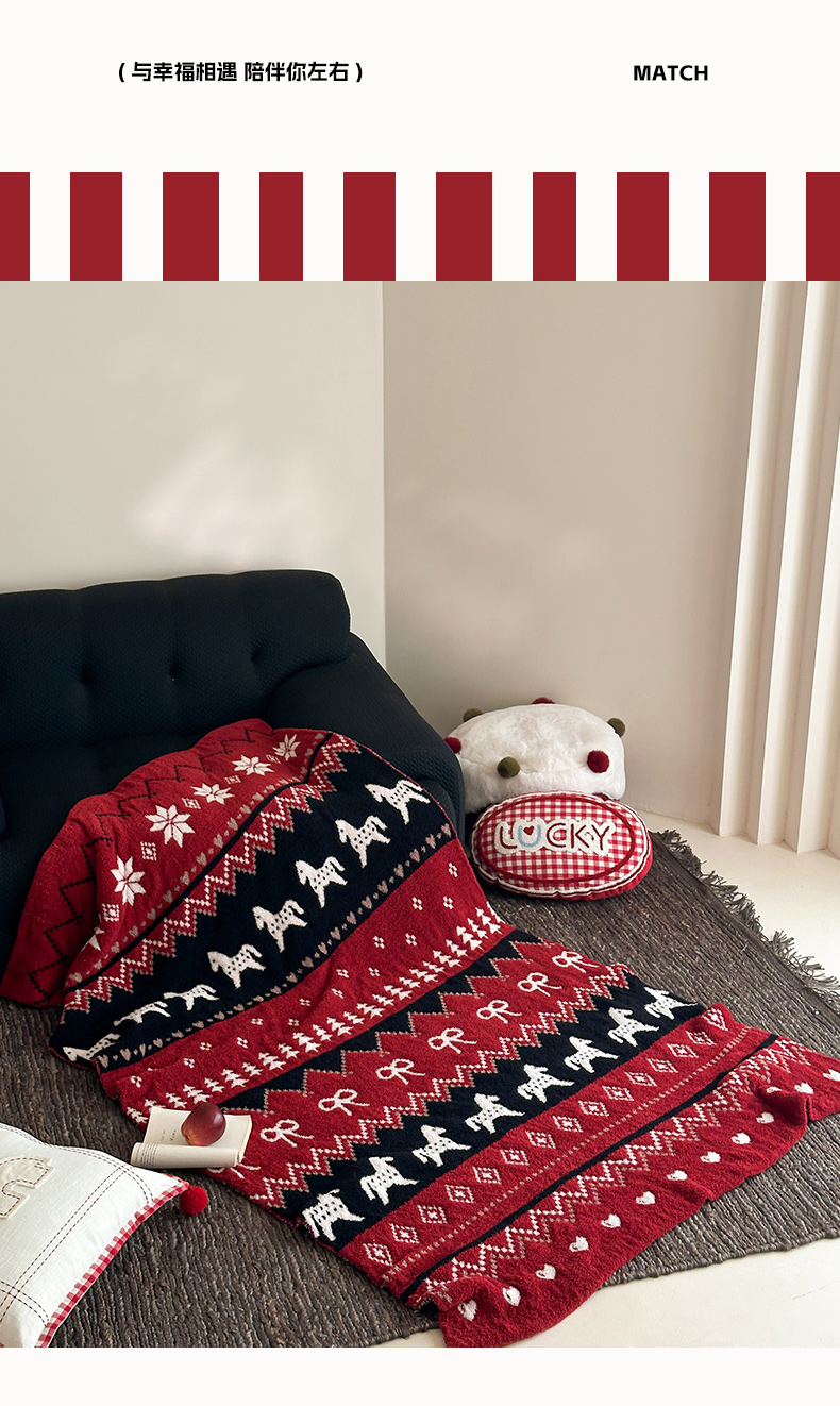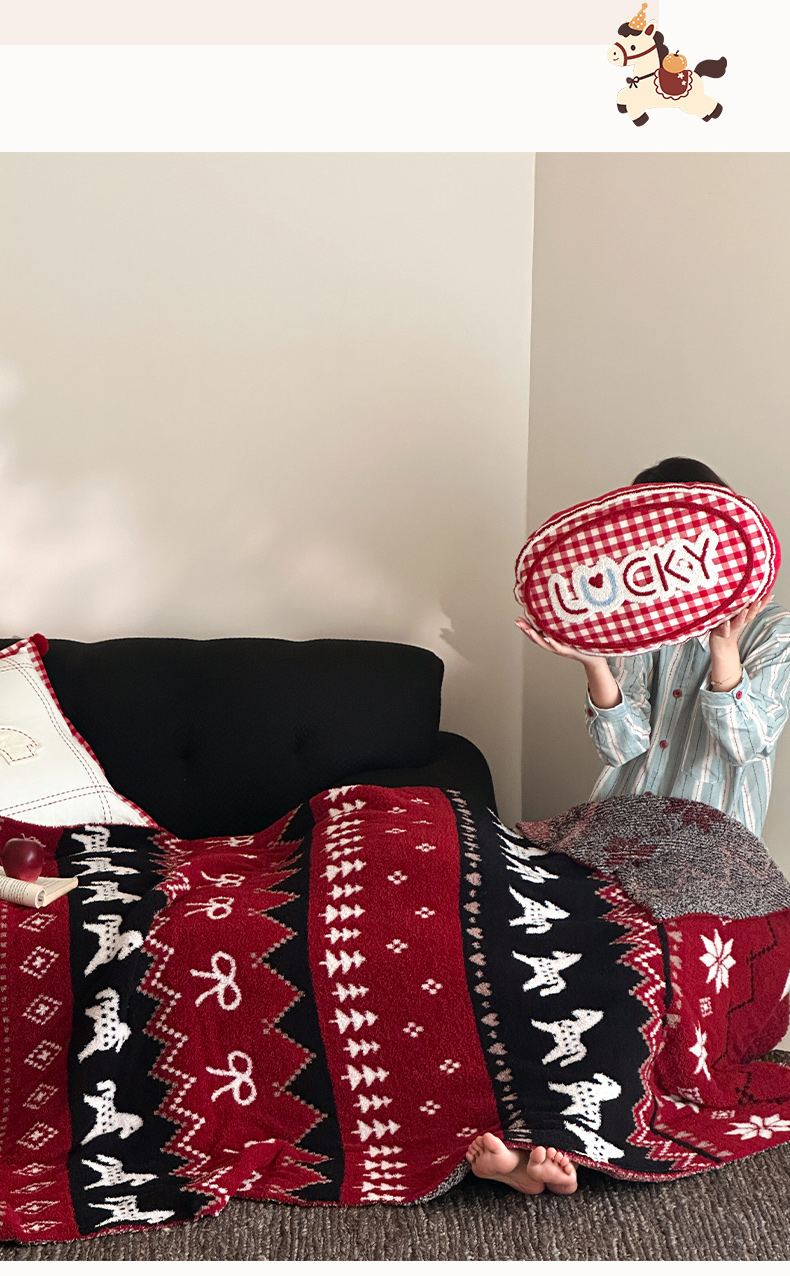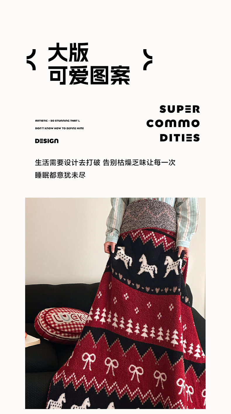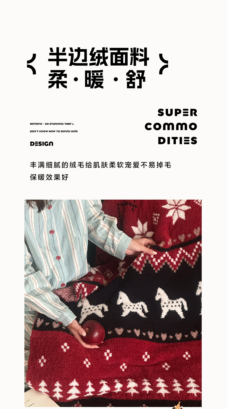 商品名称:RYB红黄兰 2026新款设计师原创多功能针织半边绒毛毯午休毯盖毯加厚毯子 费尔岛小马
