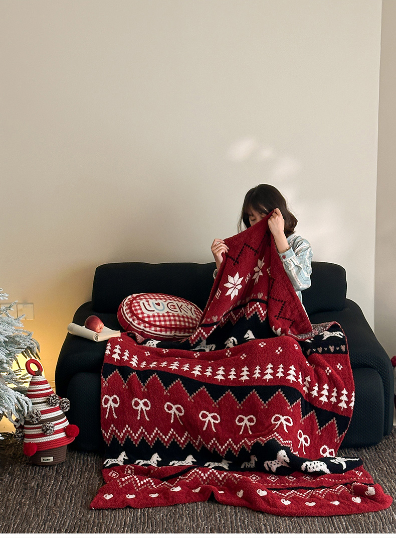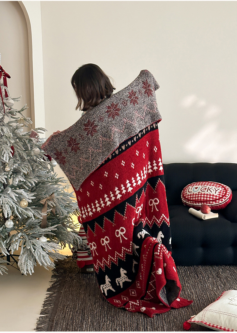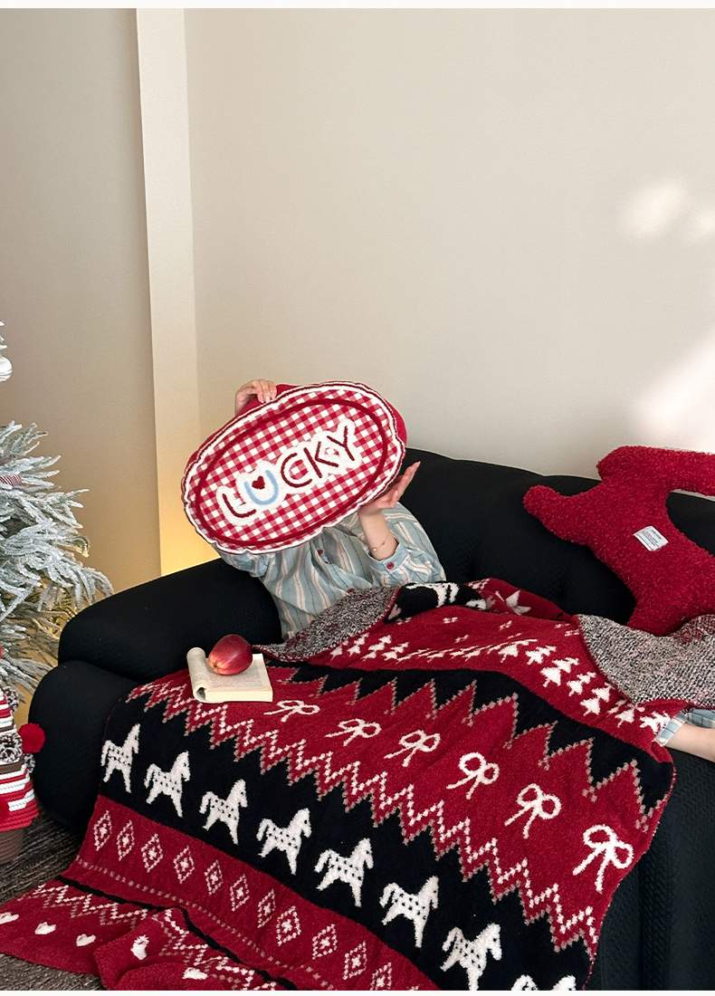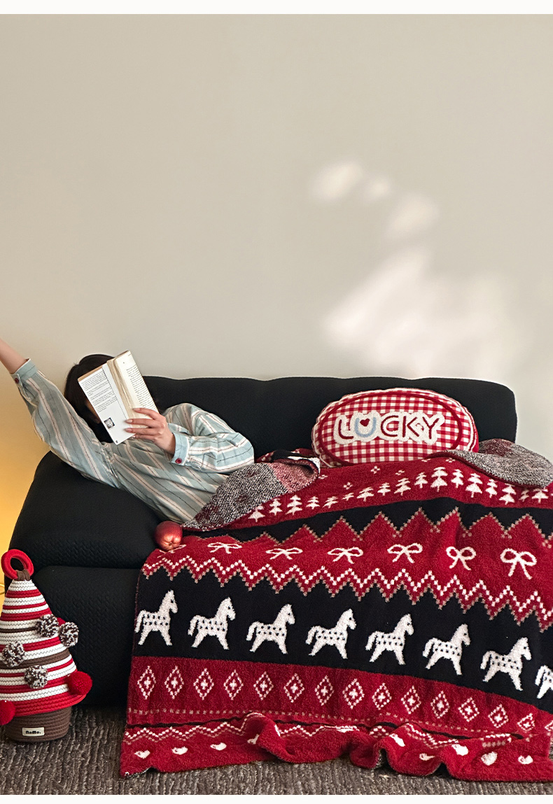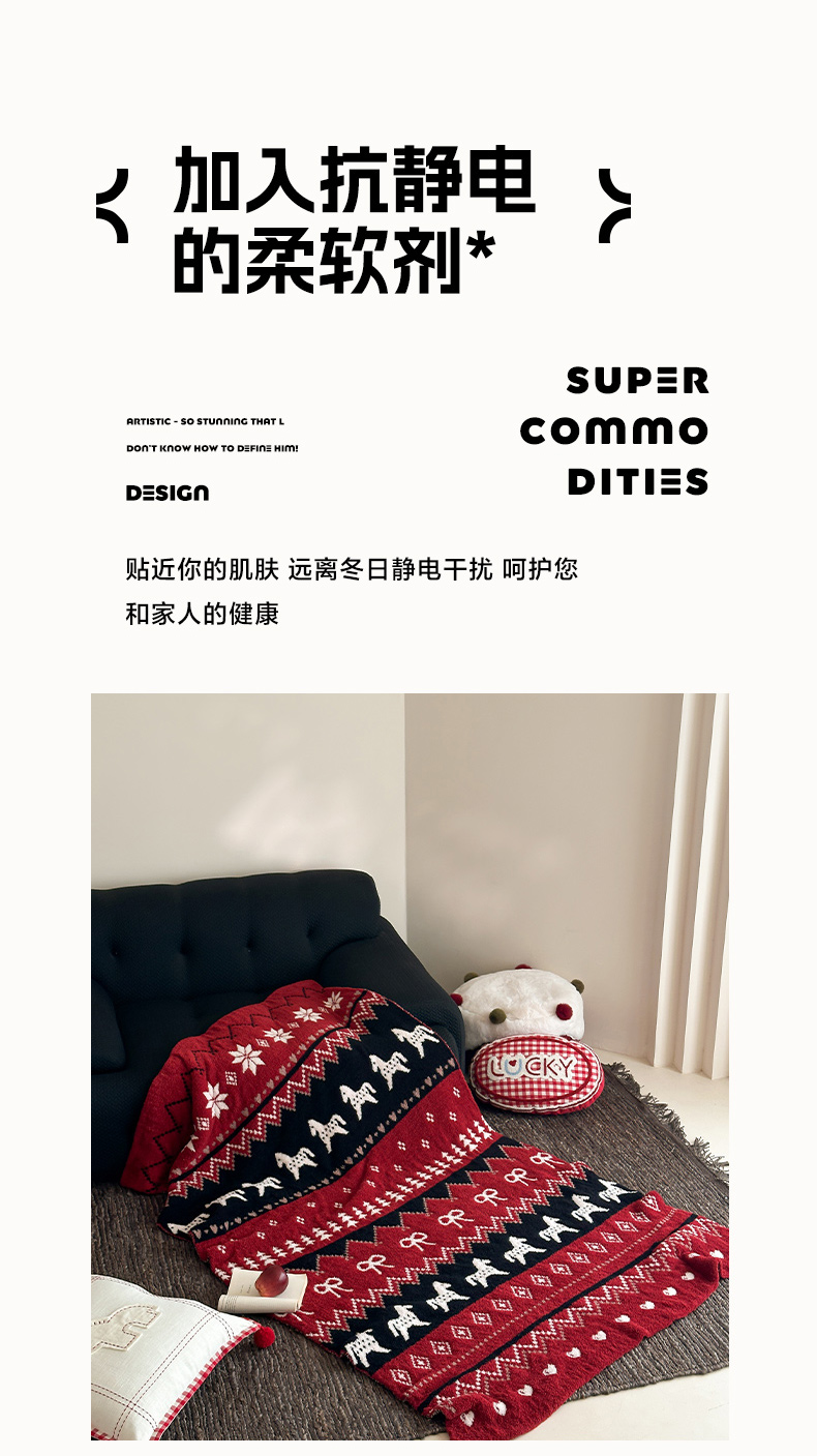 商品名称:RYB红黄兰 2026新款设计师原创多功能针织半边绒毛毯午休毯盖毯加厚毯子 费尔岛小马