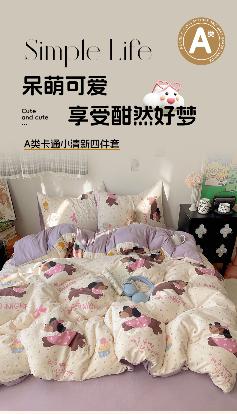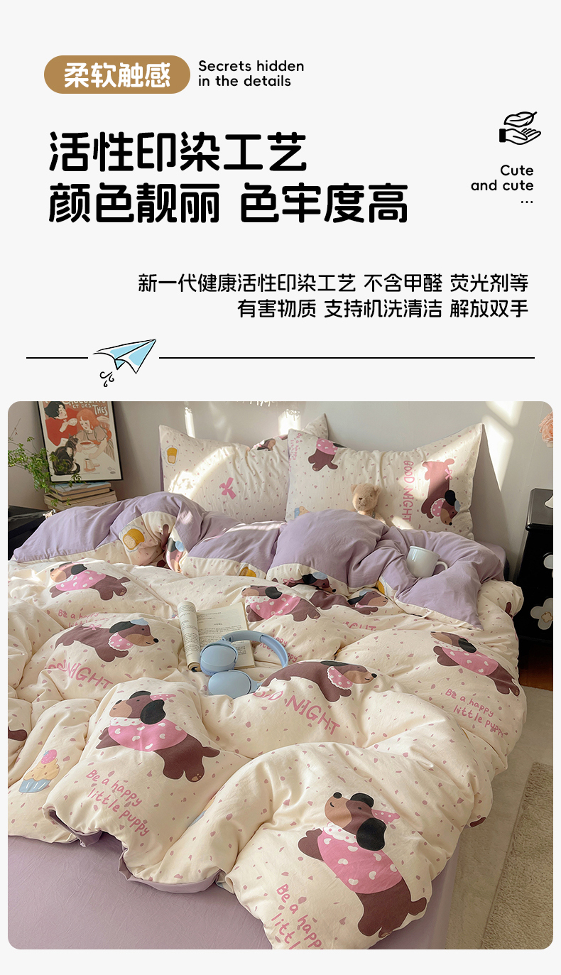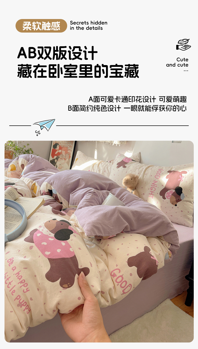 当前位置: 91家纺网 > 商品网购 > 床品套件 > 四件套 > 水洗棉四件套 > 沐芷 2026 【提供买家秀】A类软糯水洗棉四件套床上宿舍三件套床单被套 香芋紫狗