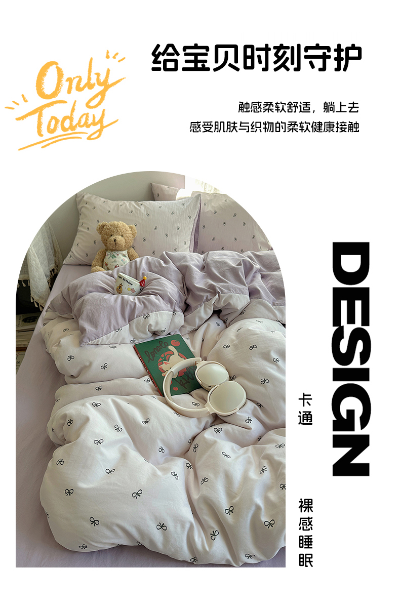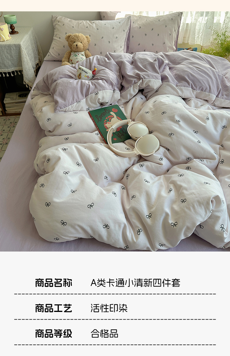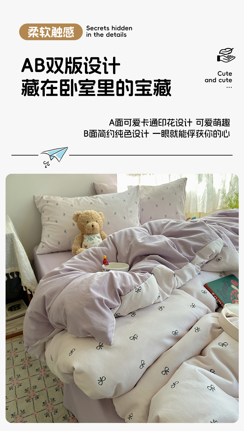 当前位置: 91家纺网 > 商品网购 > 床品套件 > 四件套 > 水洗棉四件套 > 沐芷 2026 【提供买家秀】A类软糯水洗棉四件套床上宿舍三件套床单被套 紫色蝴蝶结