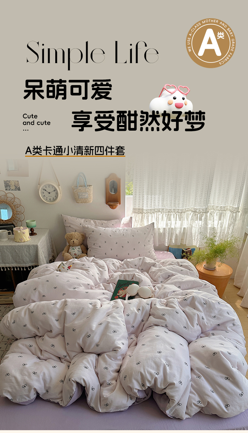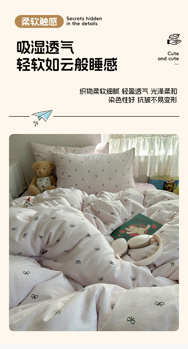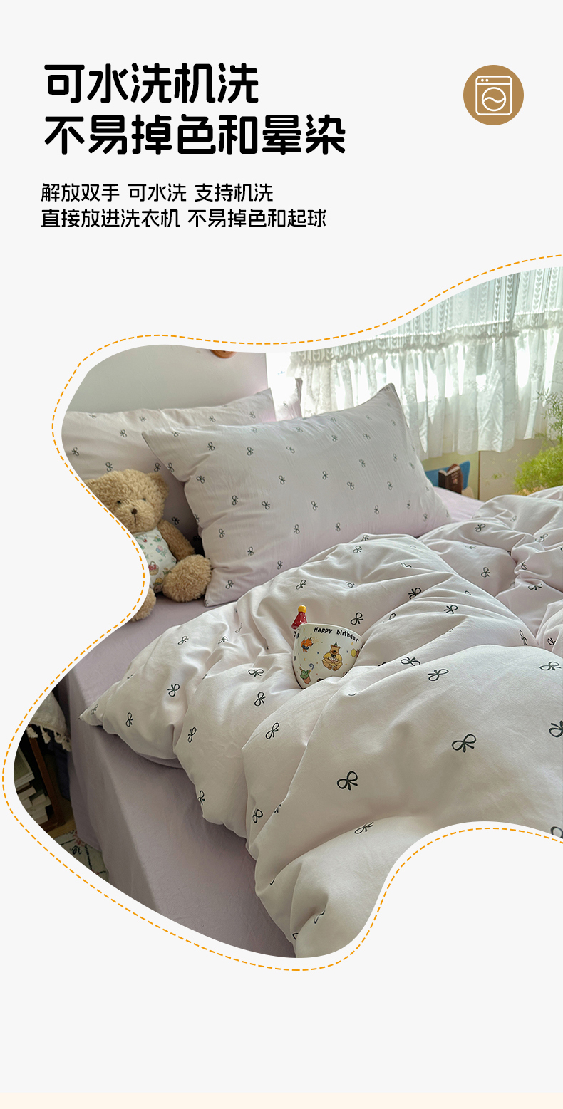 当前位置: 91家纺网 > 商品网购 > 床品套件 > 四件套 > 水洗棉四件套 > 沐芷 2026 【提供买家秀】A类软糯水洗棉四件套床上宿舍三件套床单被套 紫色蝴蝶结