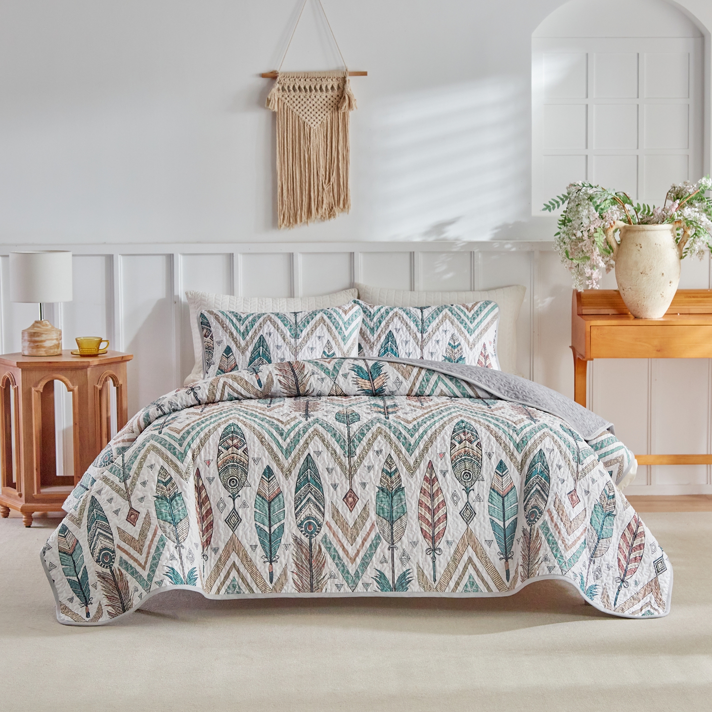 (总)温宁2025新款跨境外贸专供斜方格床盖,绿色,米色,银灰