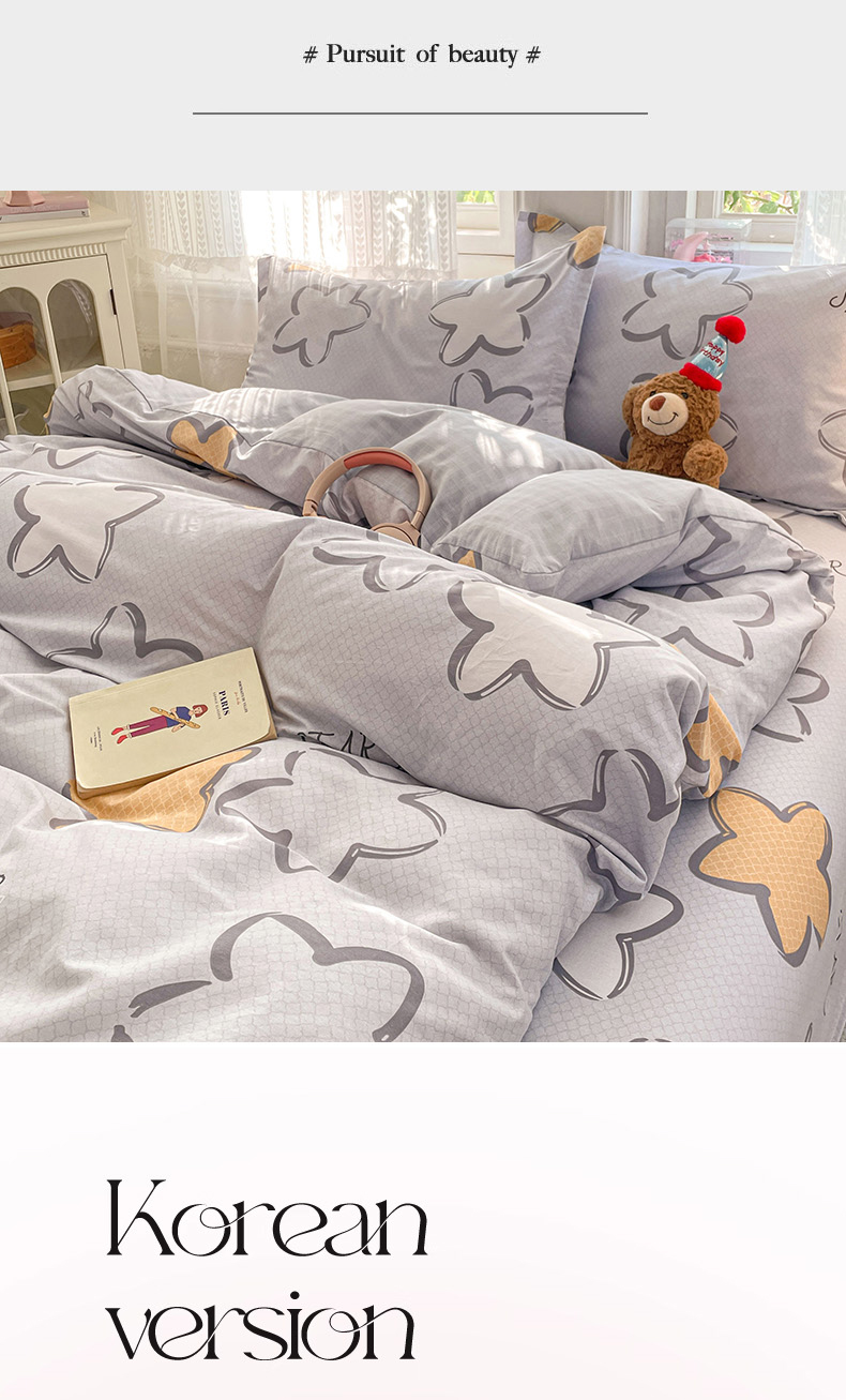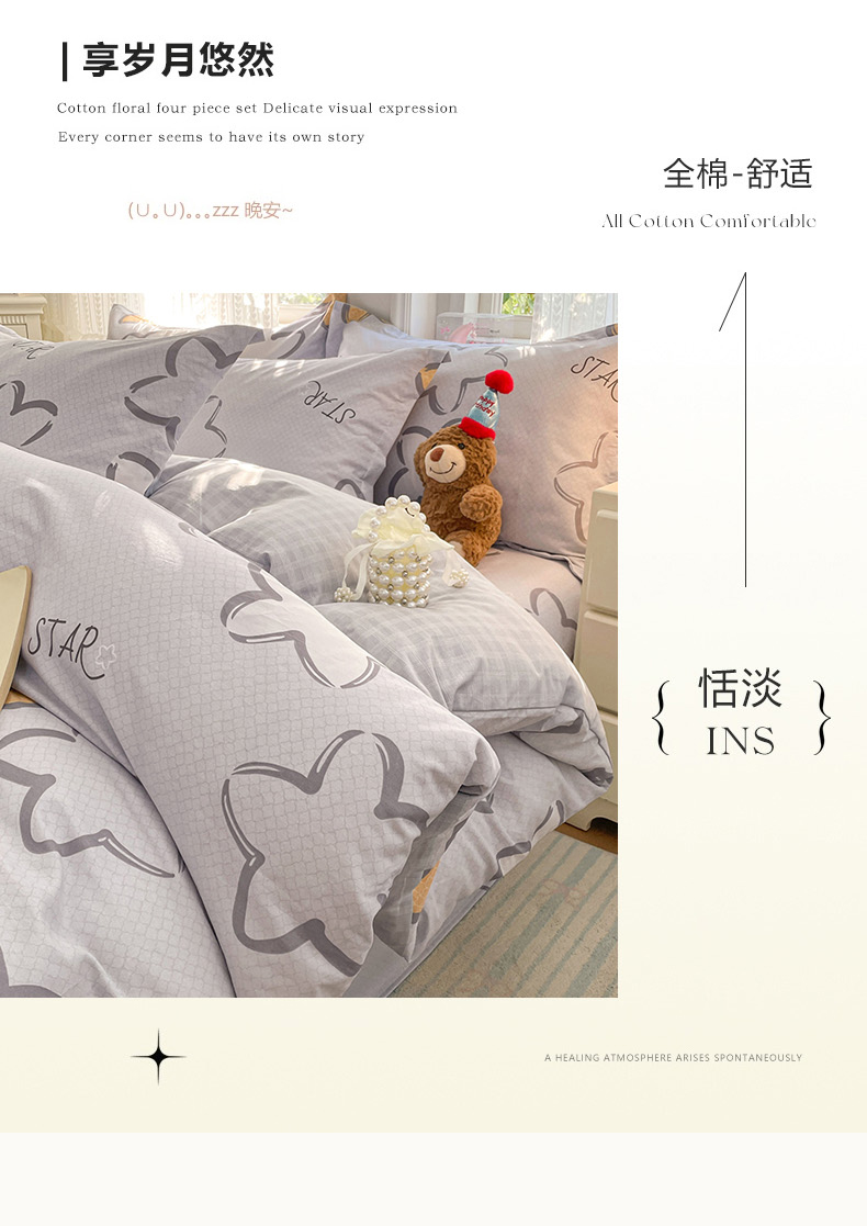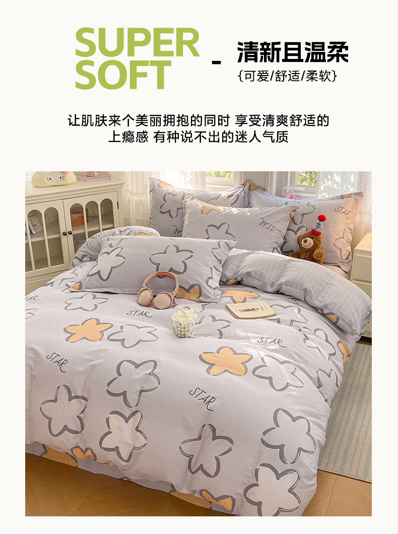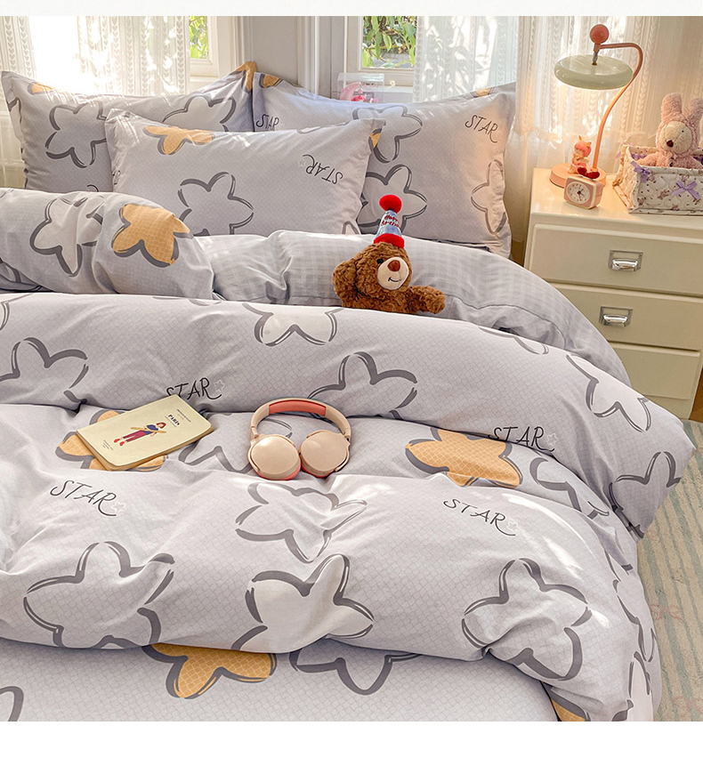 商品名称:世爵 2026春夏新款全棉纯棉印花小清新四件套 梦里星光-灰