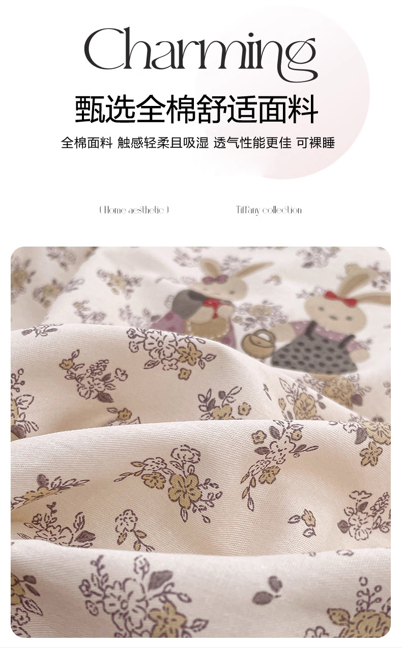 • 91家纺网 家纺一手货源 找家纺 世爵 2026新款全棉纯棉印花小清新单被套单品系列 田园小兔