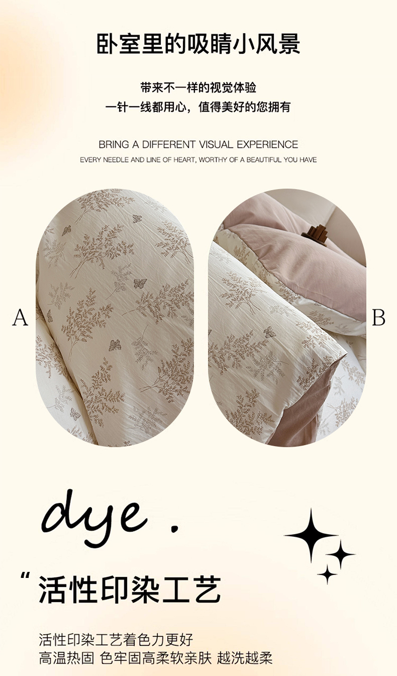 (总)家贝爱 2026新款有氧水洗双层纱被套,镜花水月,恋薇紫,绿野仙踪,木兮,清风晨光,水墨花海,叶倾城,雍容华贵,悠悠花簇,圆梦,枝上蝶舞