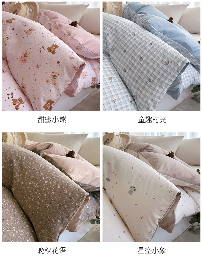 (总)家贝爱 2026新款加厚水洗棉被套被套单件,草莓点点,丛林蘑菇,浮梦花影,莱茵花畔,沐雅-咖,沐雅-绿,轻婉花语,素夕,甜蜜小熊,童趣时光,晚秋花语,星空小象