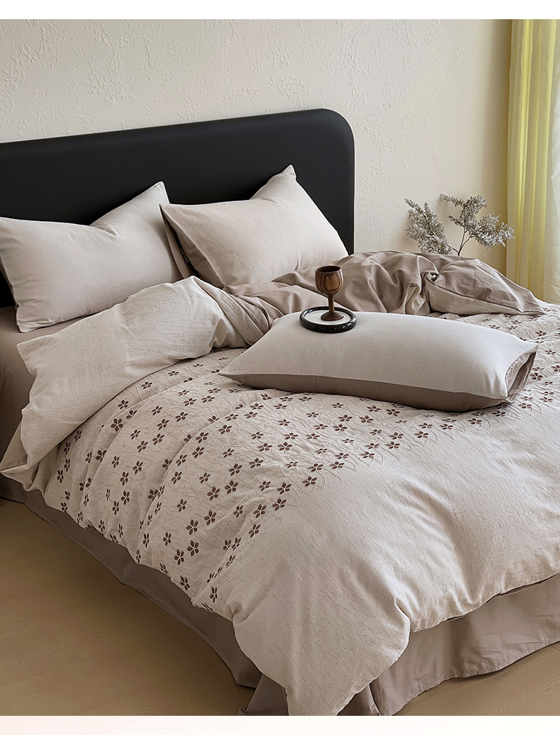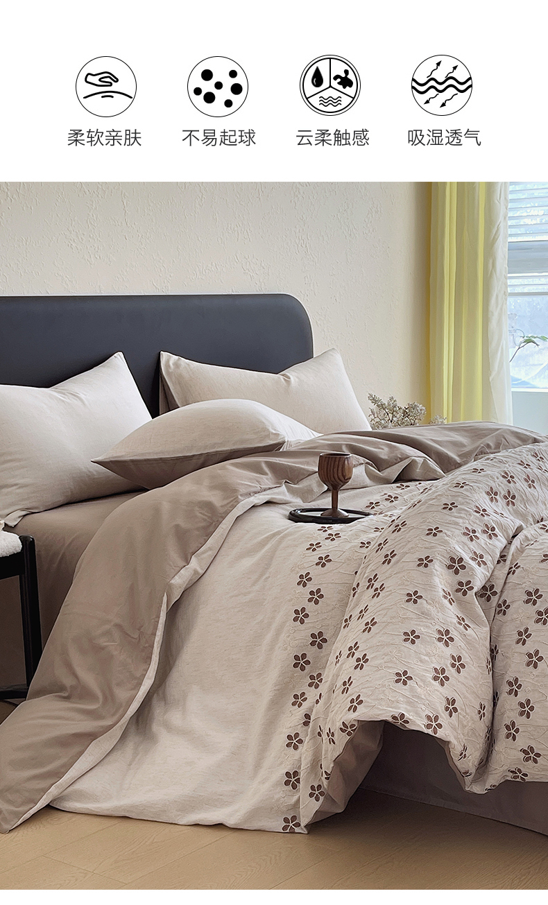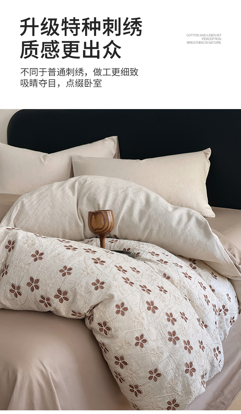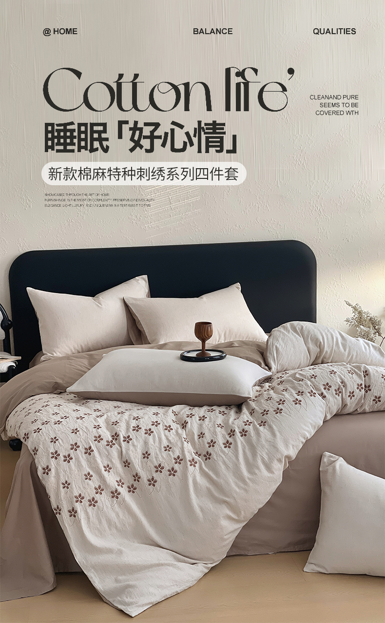 (总)琪格格纺织 2026新款棉麻特种刺绣高奢四件套,屿光漫织,月移花影