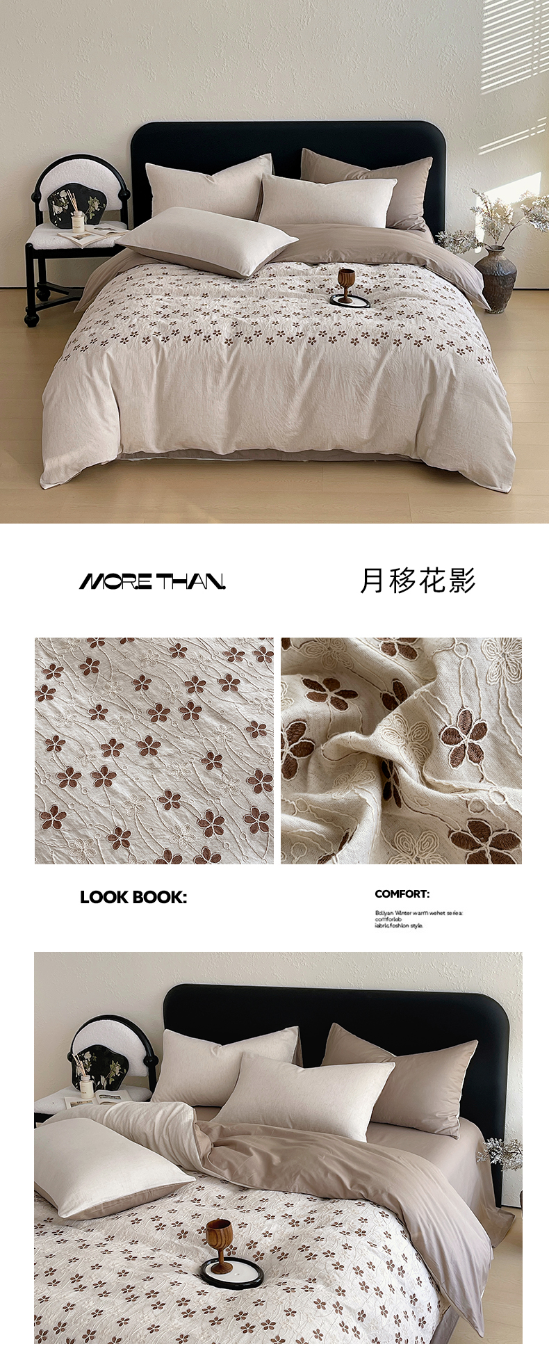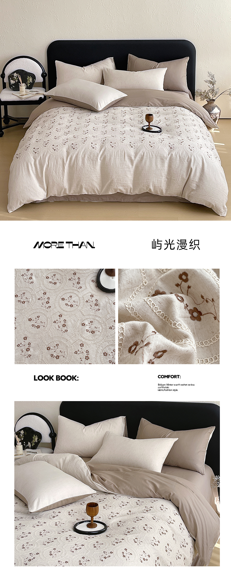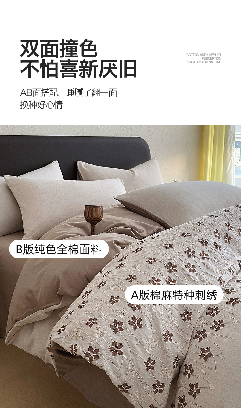 (总)琪格格纺织 2026新款棉麻特种刺绣高奢四件套,屿光漫织,月移花影