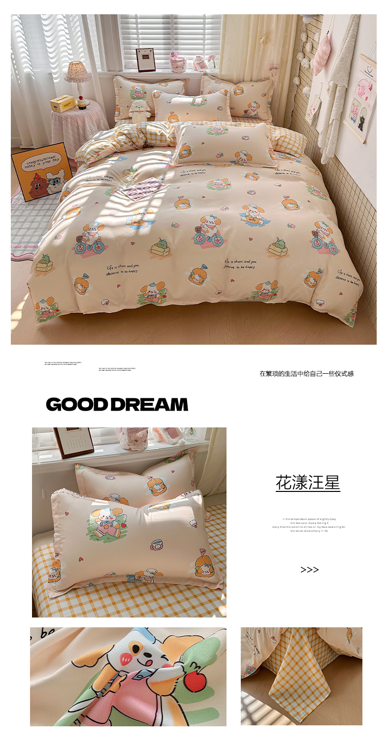 (总)卡斯诺家纺馆 2026新款A类亲肤芦荟棉四件套 下载文件包含买家秀,奶咖萌犬,格纹友趣,花漾汪星,朦胧花兔,奶油小熊,软萌熊格,疏影,微笑柴犬,小熊花梦,星空迷航,熊崽甜莓,英伦格调,幽香花眠,月光花宠,深空灰调