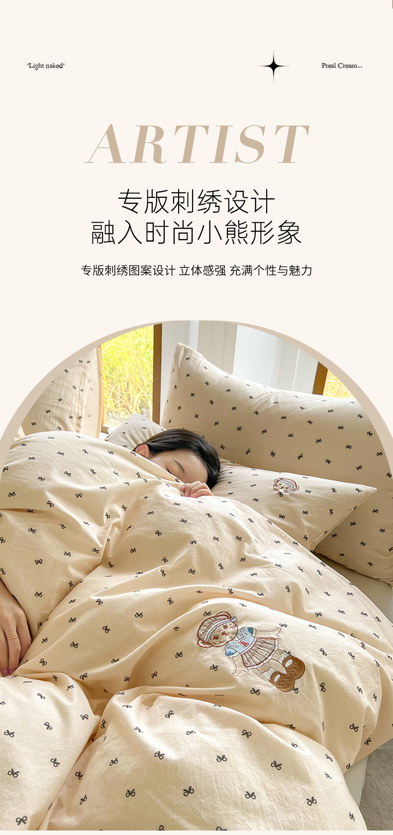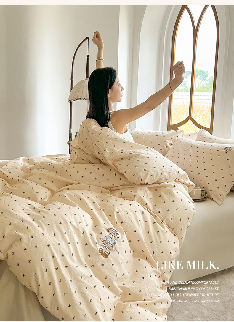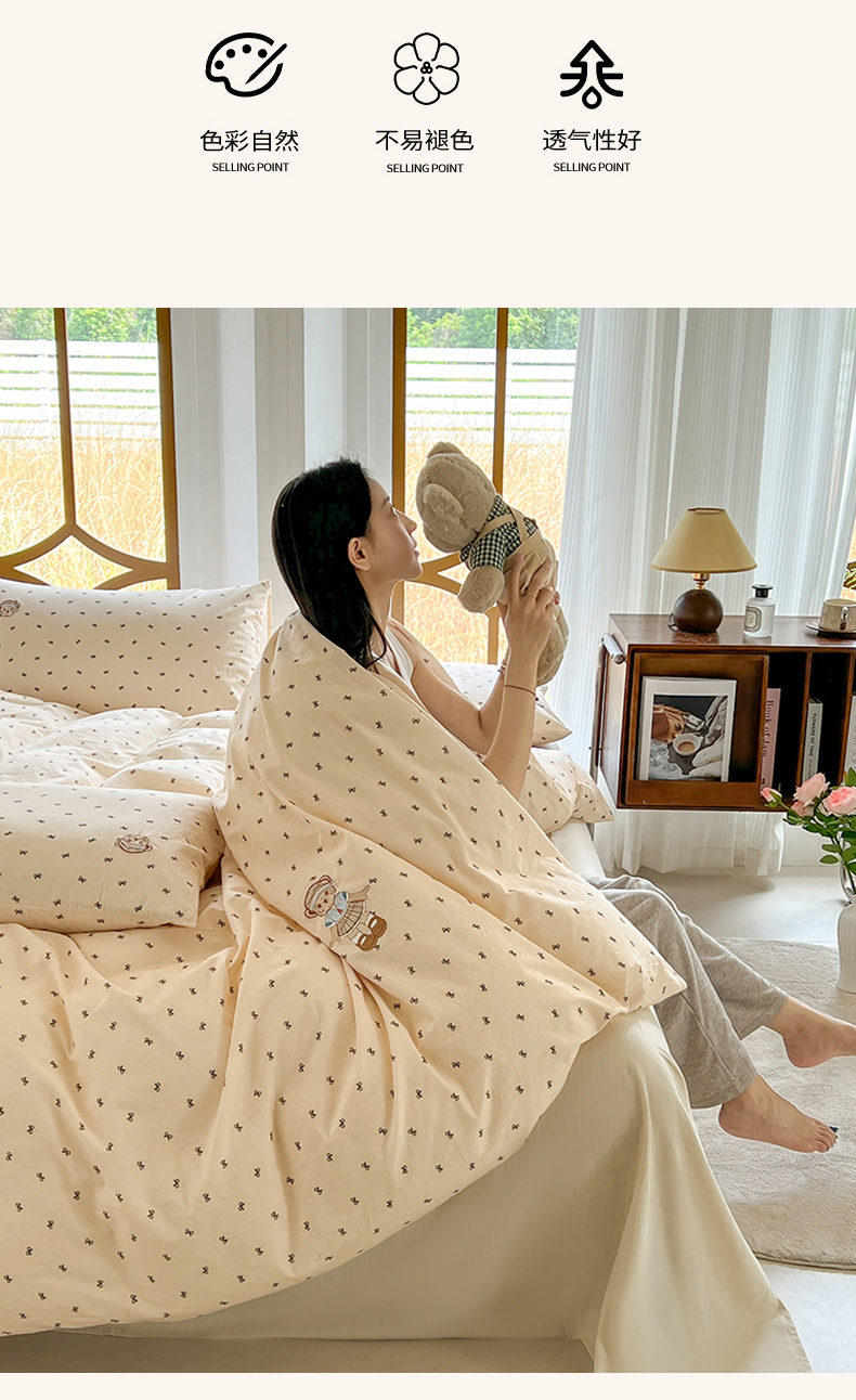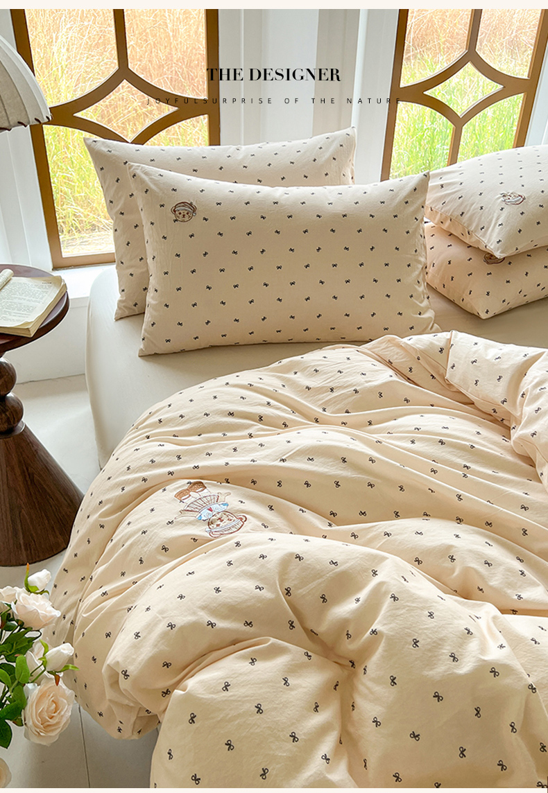 当前位置: 91家纺网 > 商品网购 > 床品套件 > 四件套 > 水洗棉四件套 > 欣晴家纺 2026新款软糯云朵棉水洗棉刺绣三件套四件套嘟嘟小熊系列(风格1) 邂逅