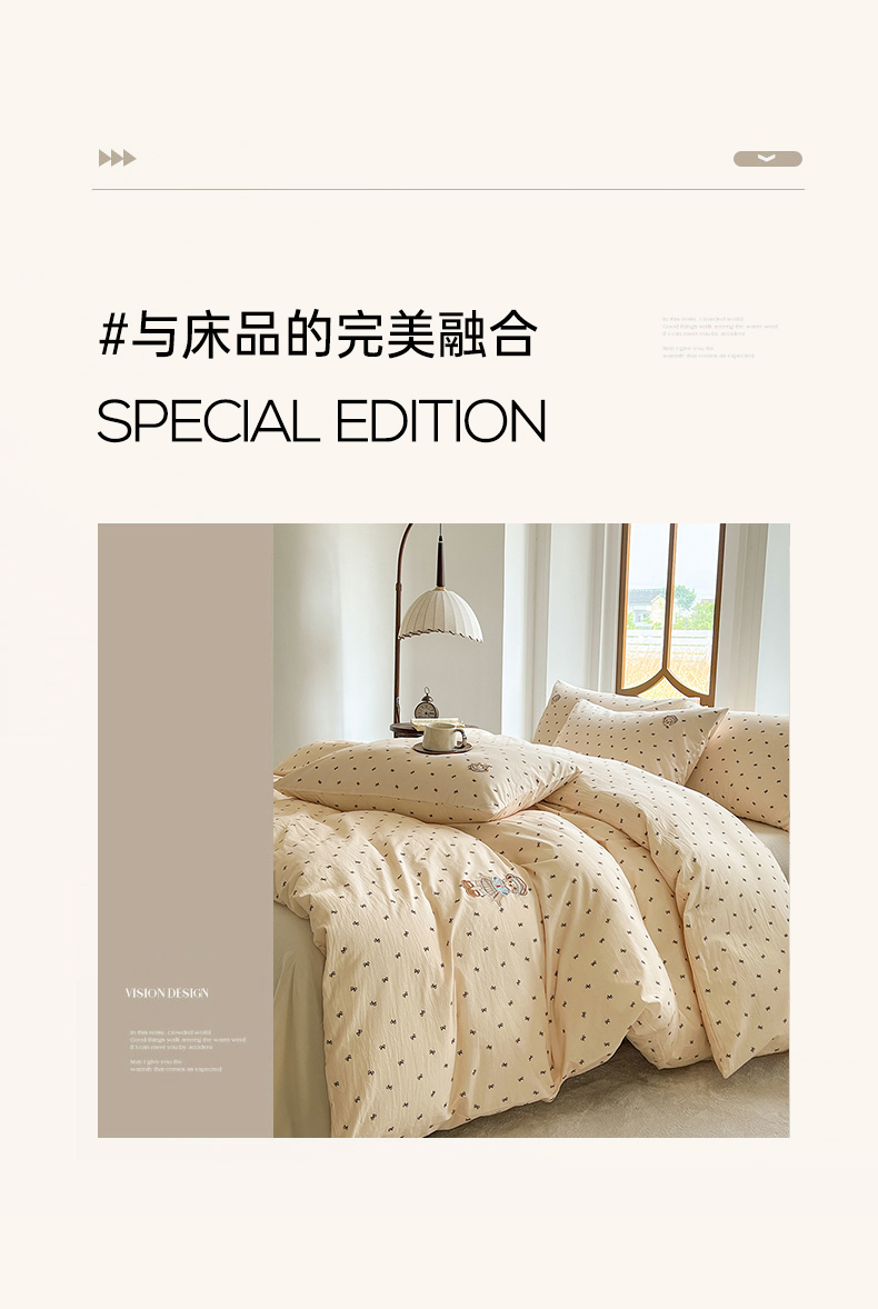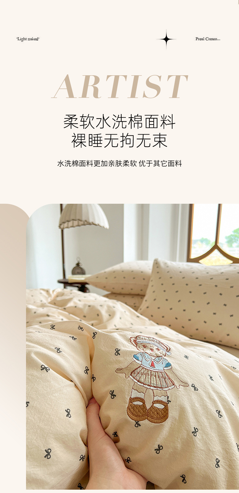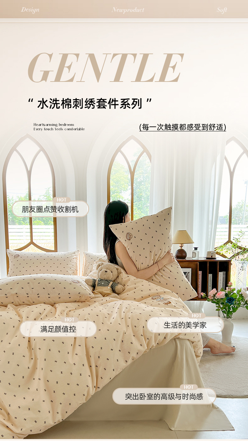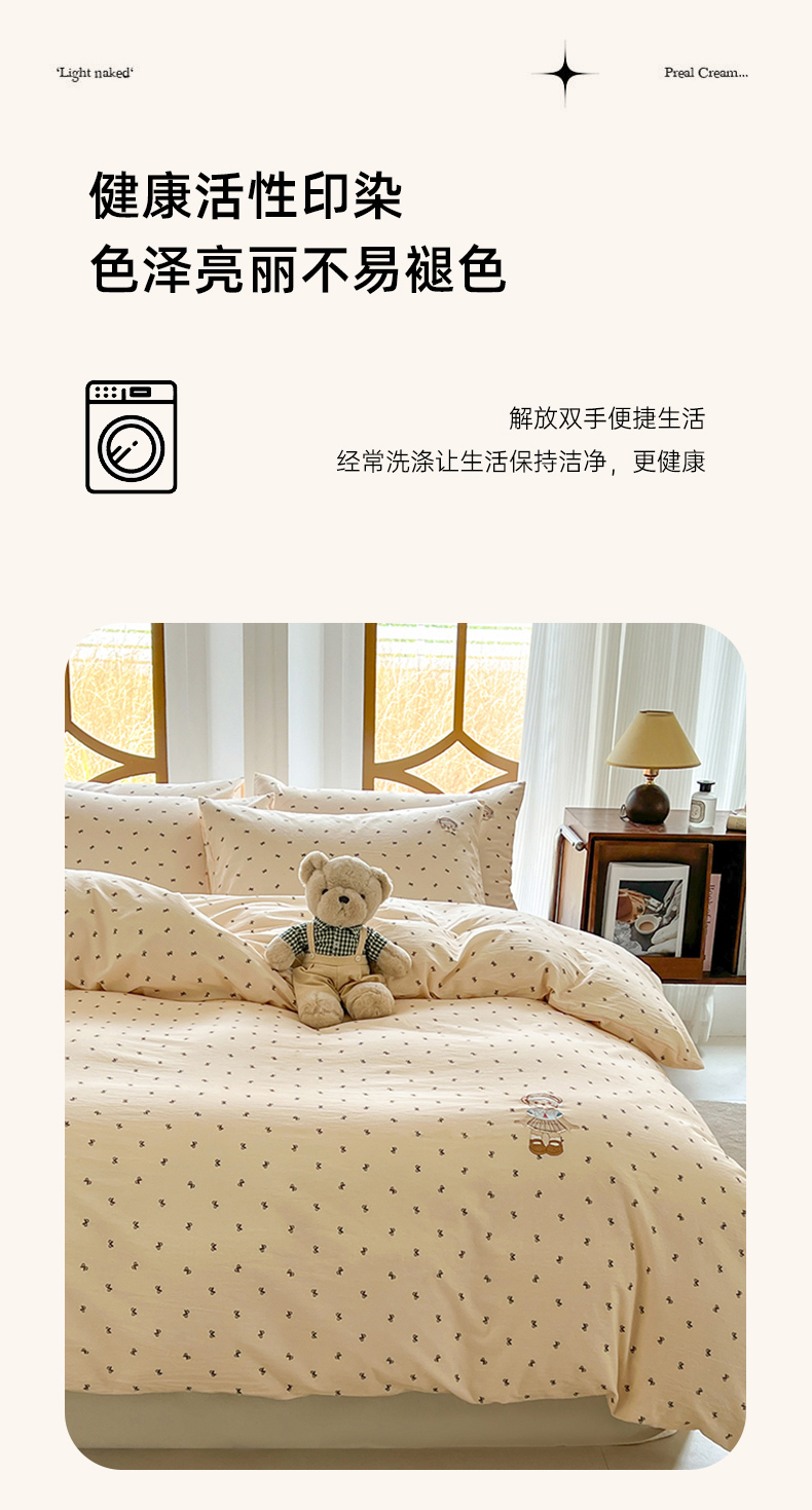 当前位置: 91家纺网 > 商品网购 > 床品套件 > 四件套 > 水洗棉四件套 > 欣晴家纺 2026新款软糯云朵棉水洗棉刺绣三件套四件套嘟嘟小熊系列(风格1) 邂逅