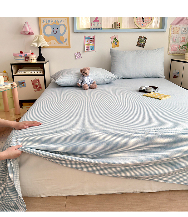 (总)沐芷 2026 【提供买家秀】古法水洗仿棉床笠席梦思床罩床垫防滑床套罩床笠三件套,萌物,甜梦糖豆,巴黎甜心,白月光,豹纹音乐,波点汪语,彩虹跳跳糖,漫游小鱼,萌犬游记,迷你格-黄,迷你格-蓝,奶味圆饼,暖意小熊,星仔,樱桃物语,组合图