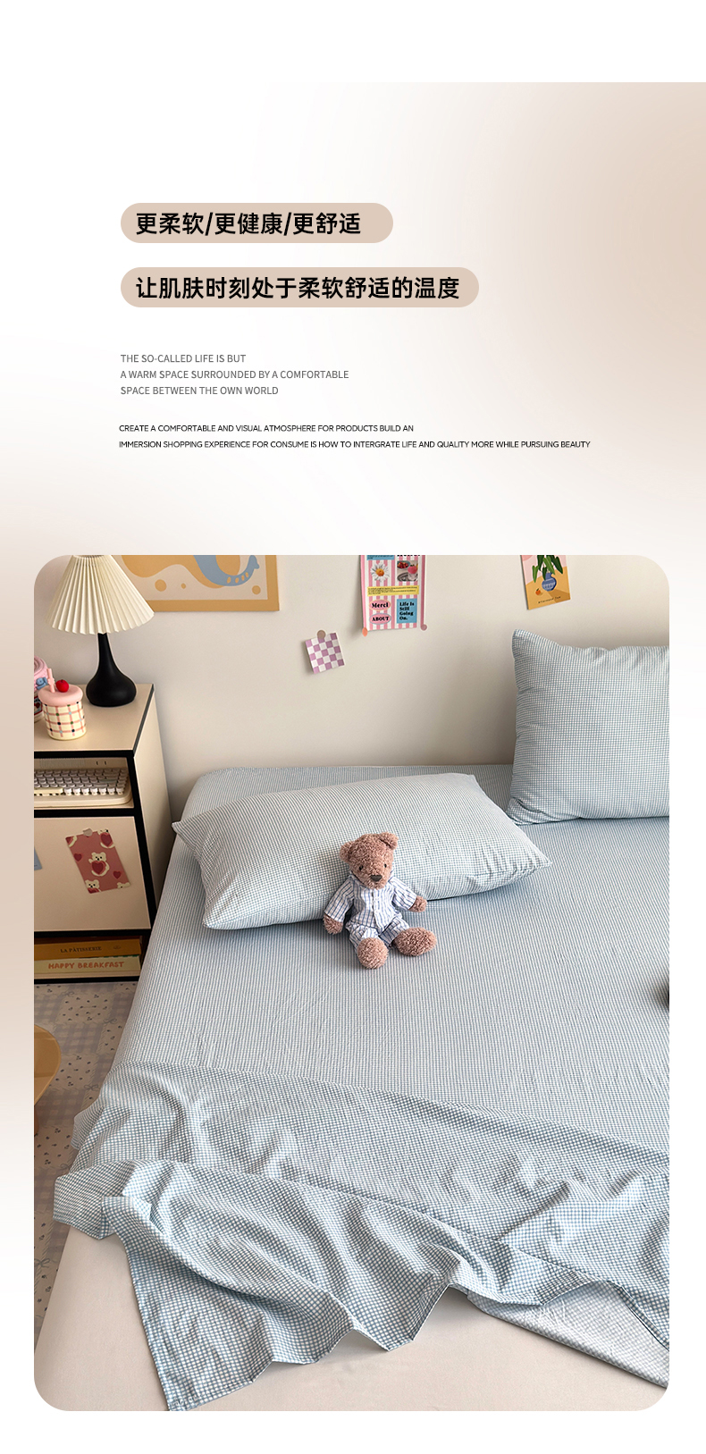 • 91家纺网 家纺一手货源 找家纺 沐芷 2026 【提供买家秀】A类单床单古法水洗仿棉 单人双人床单三件套 迷你格-蓝