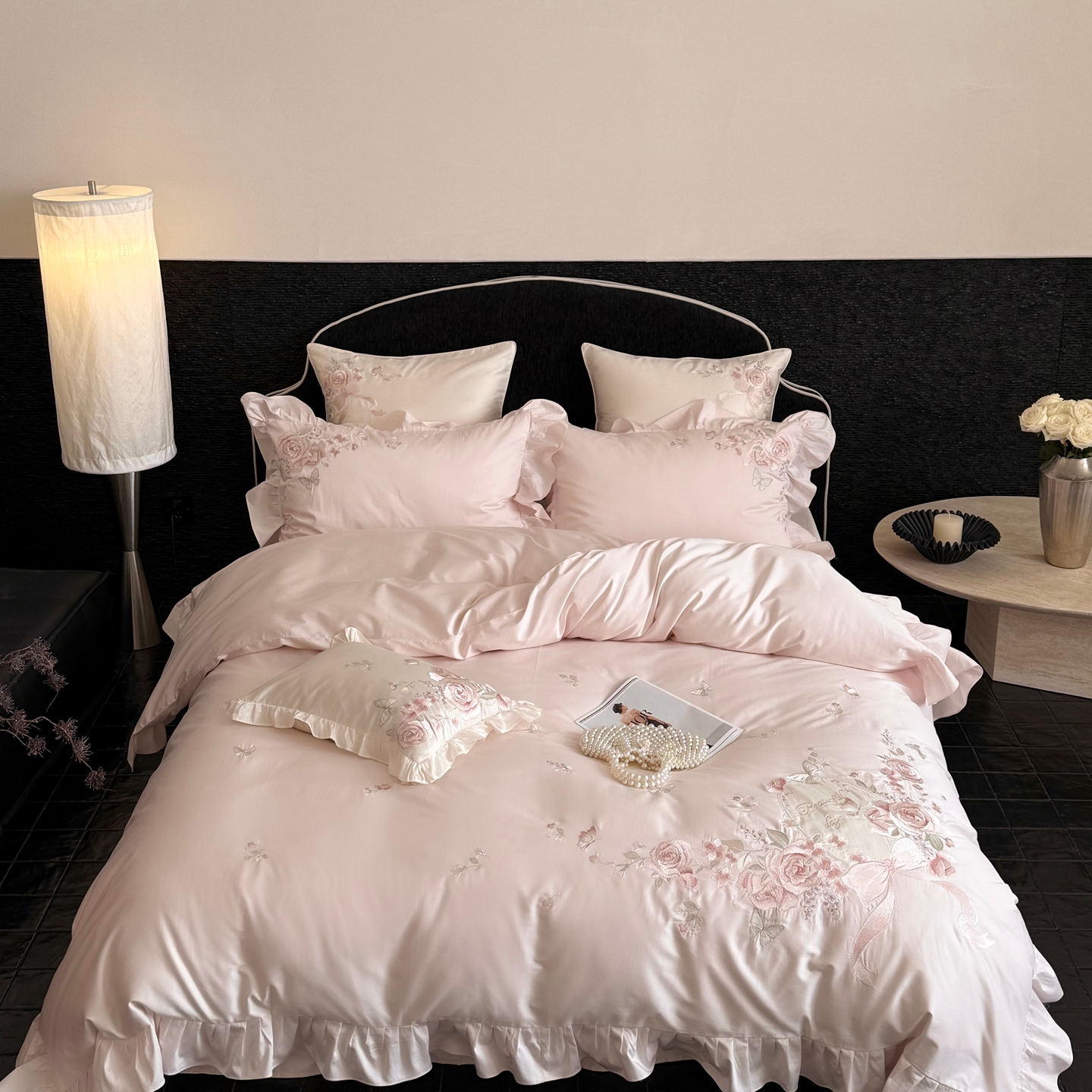 商品名称:鹿班家居 2026新款100S长绒棉纯棉精密刺绣系列四件套-邂逅庄园(标准会员-20元) 邂逅庄园-粉色