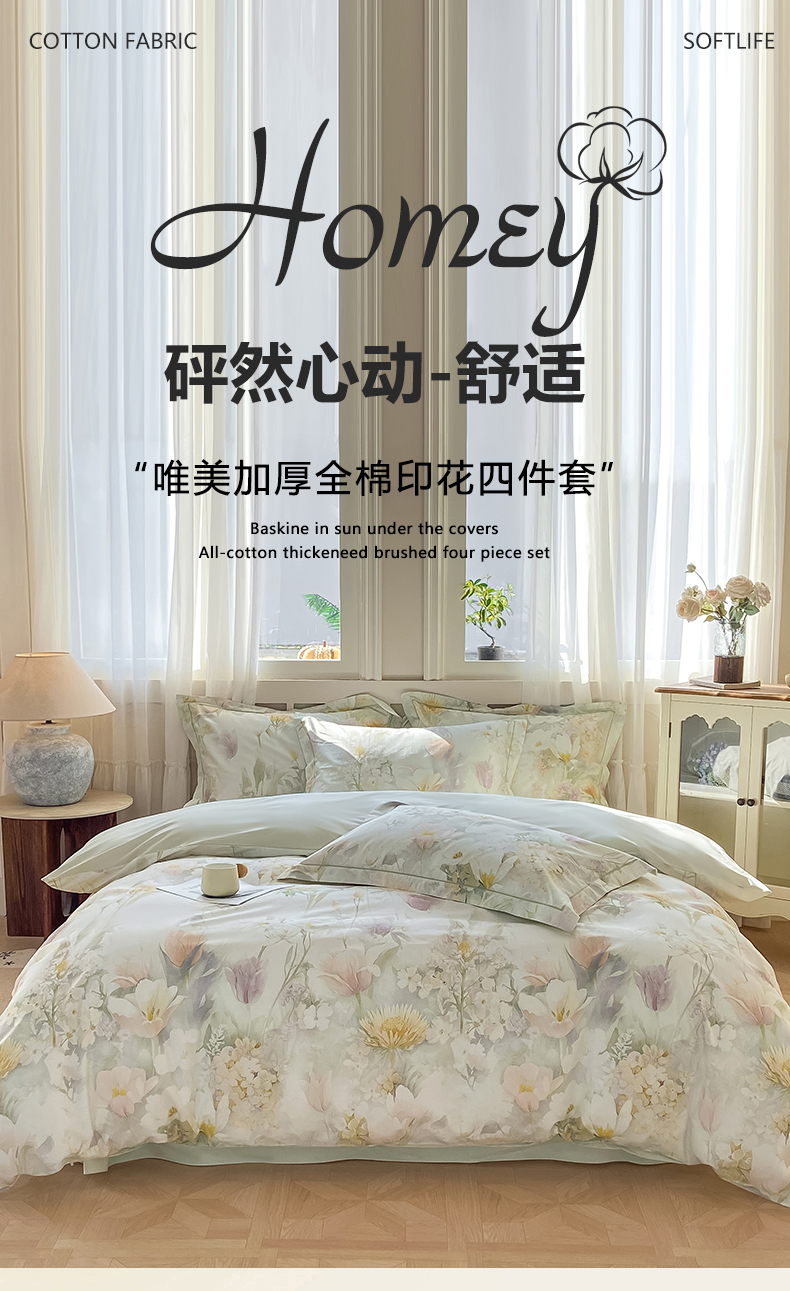 当前位置: 91家纺网 > 商品网购 > 床品套件 > 四件套 > 全棉普通四件套 > XIWEN-希文家纺 2026新款40支全棉纯棉13376数码印花四件套-第一批 明媚