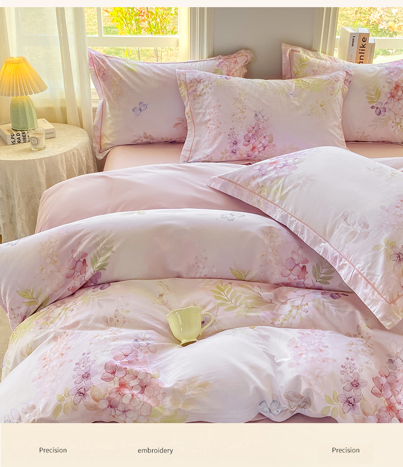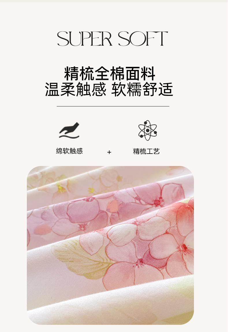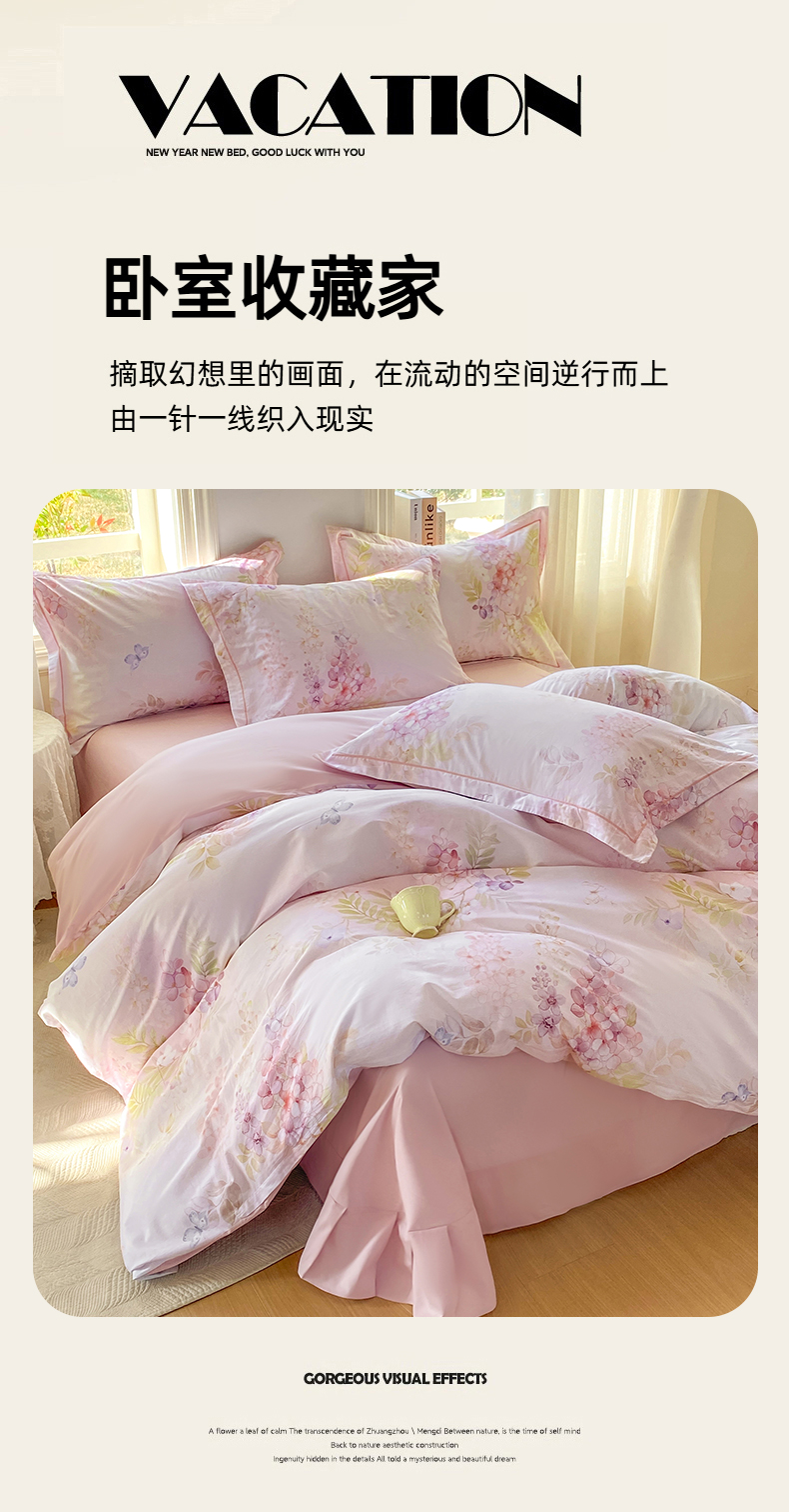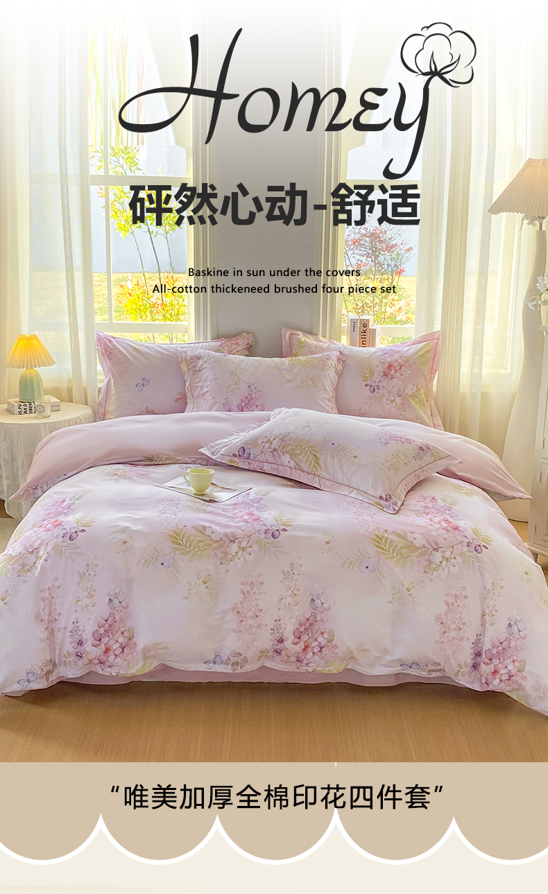 当前位置: 91家纺网 > 商品网购 > 床品套件 > 四件套 > 全棉普通四件套 > XIWEN-希文家纺 2026新款40支全棉13376数码印花四件套-第二批 风铃-粉