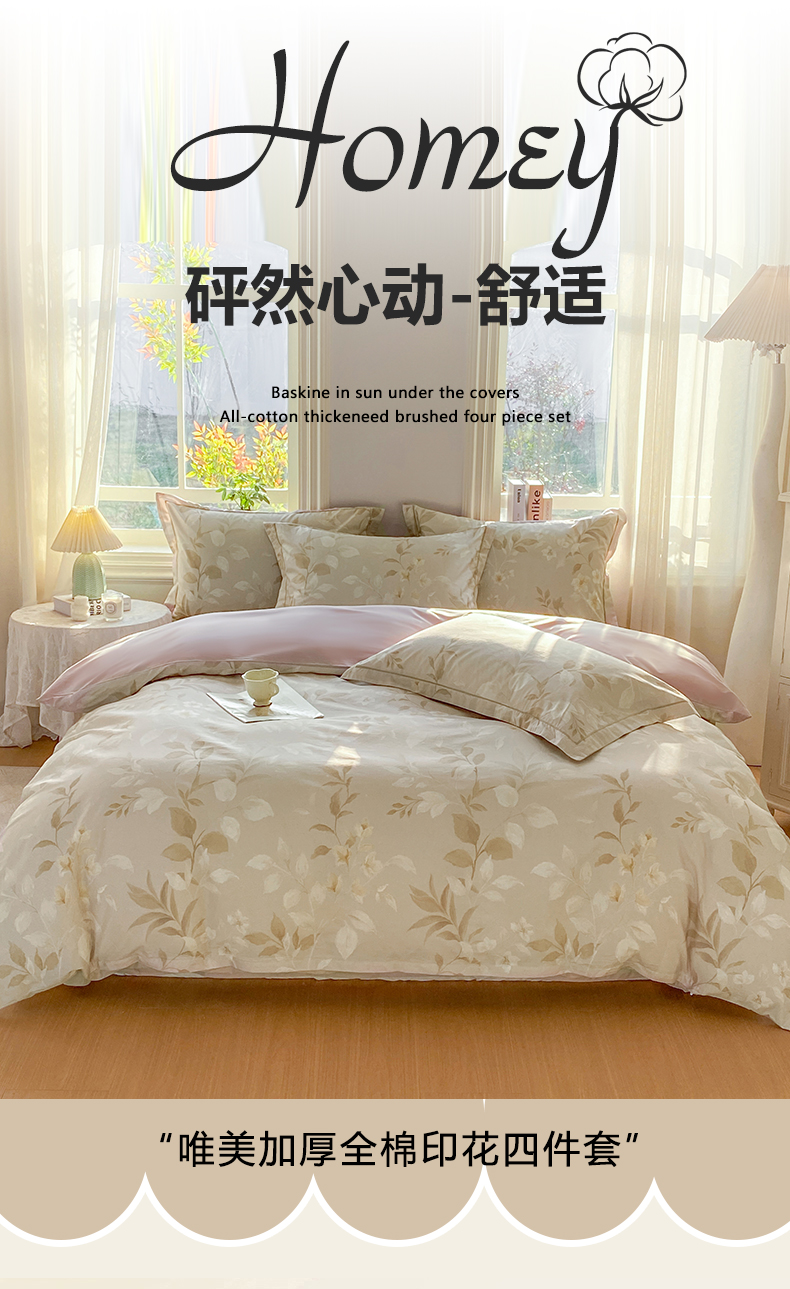 当前位置: 91家纺网 > 商品网购 > 床品套件 > 四件套 > 全棉普通四件套 > XIWEN-希文家纺 2026新款40支全棉13376数码印花四件套-第二批 清风