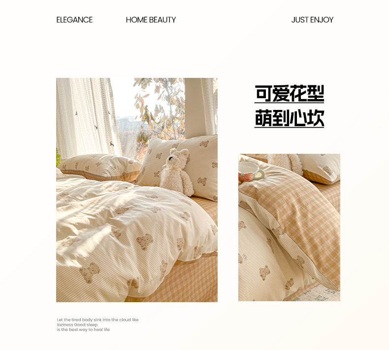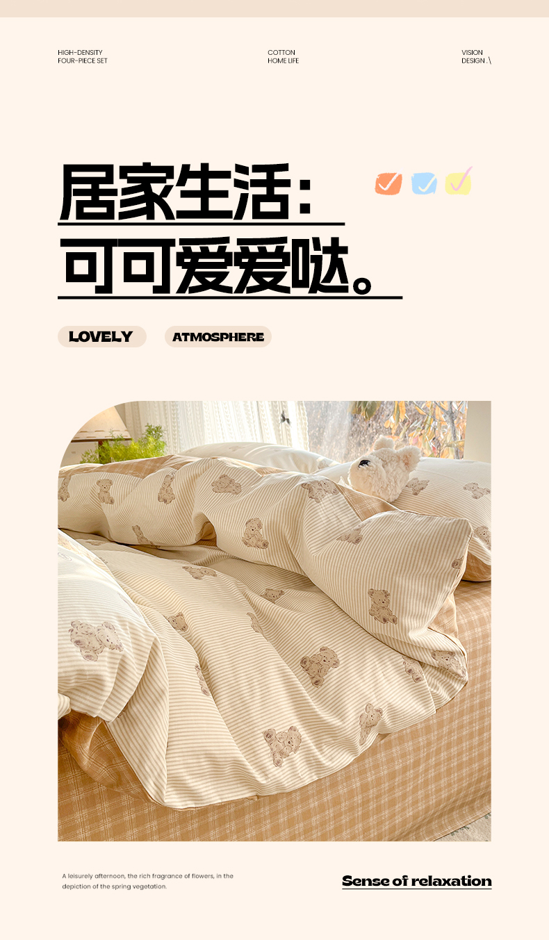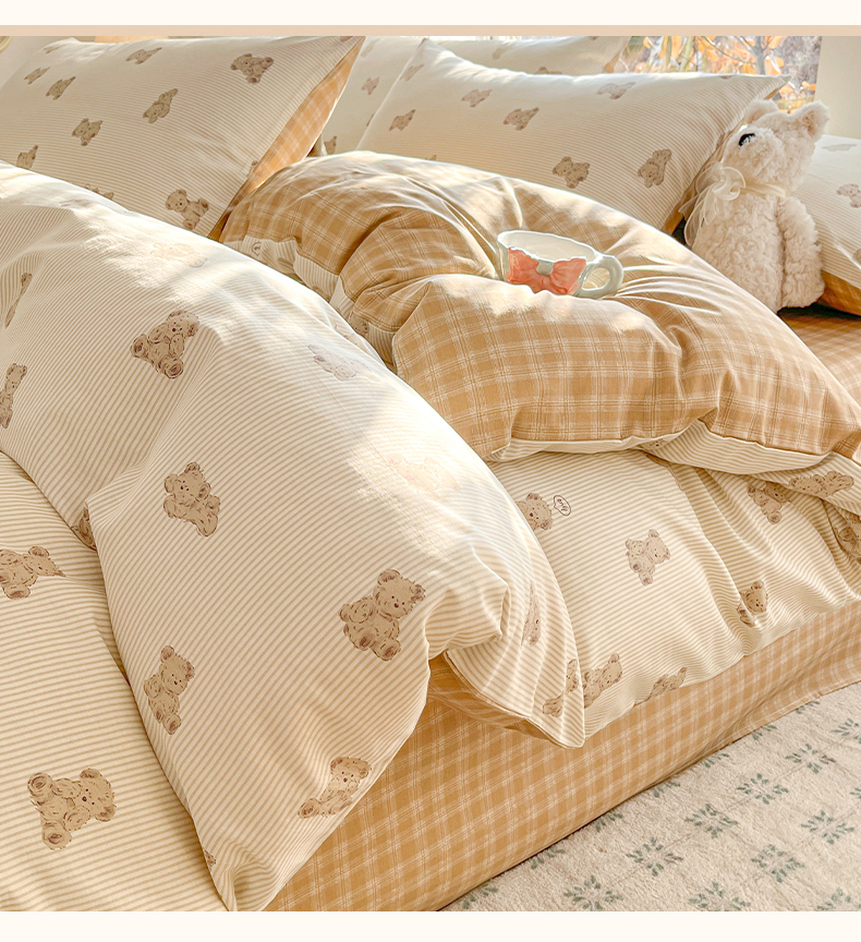吉象家纺 2026春夏新款全棉印花四件套第二批 小熊碎梦町