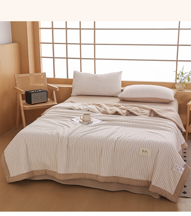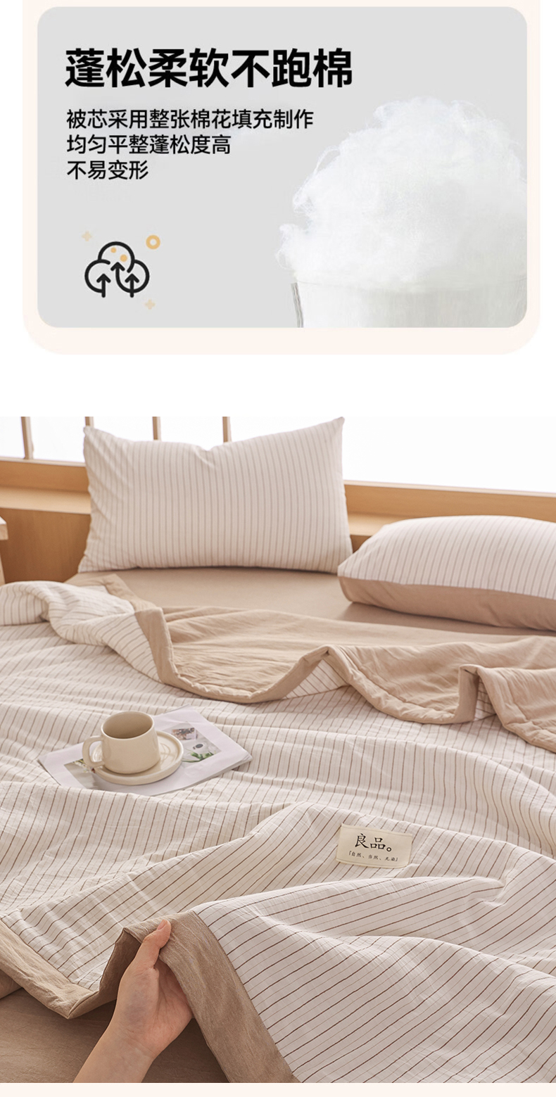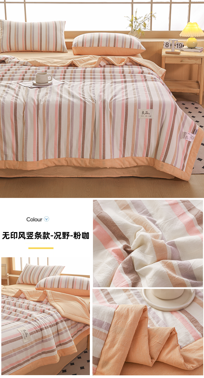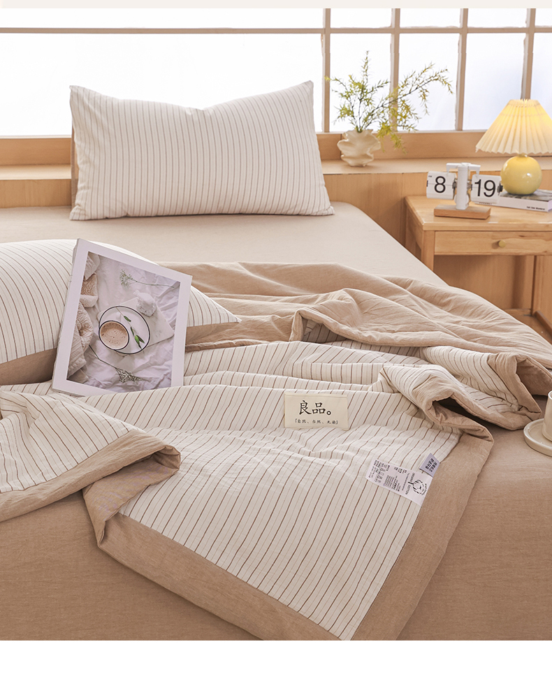 • 91家纺网 家纺一手货源 找家纺 尊妙被业 2026全棉色织水洗全棉棉花夏被 被子被芯 夏被四件套(竖条款) BG咖细条