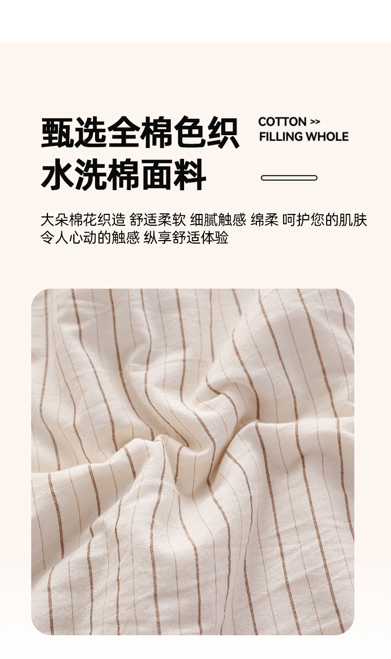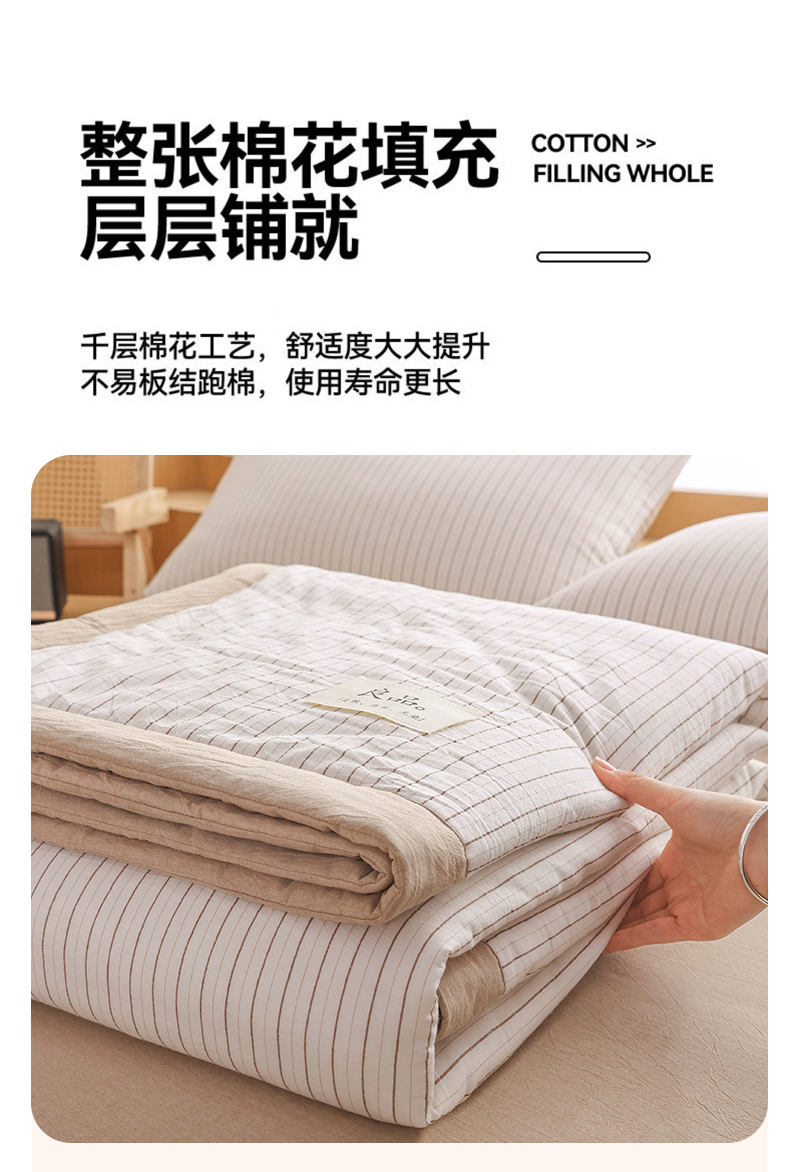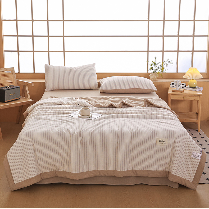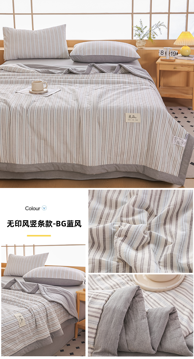 • 91家纺网 家纺一手货源 找家纺 尊妙被业 2026全棉色织水洗全棉棉花夏被 被子被芯 夏被四件套(竖条款) BG咖细条