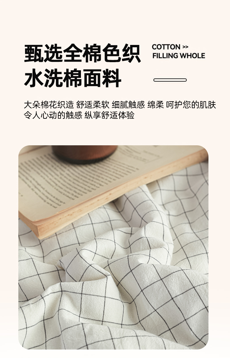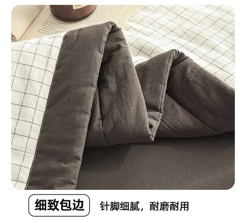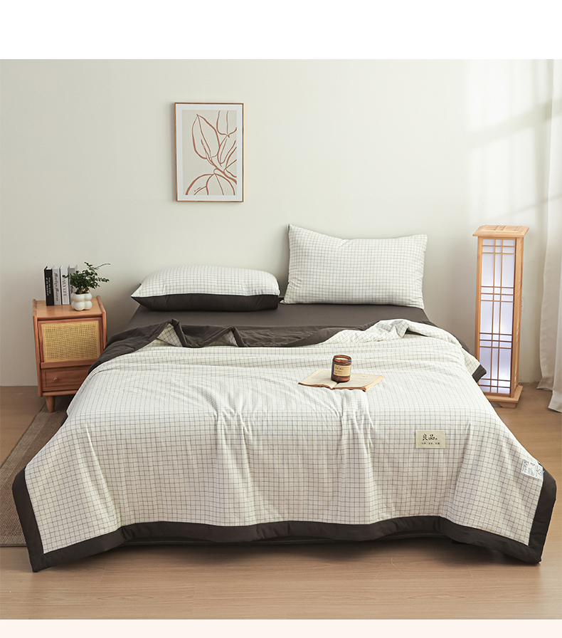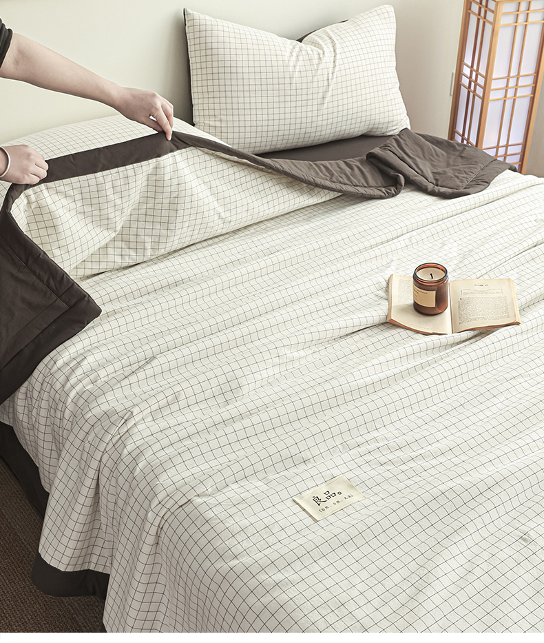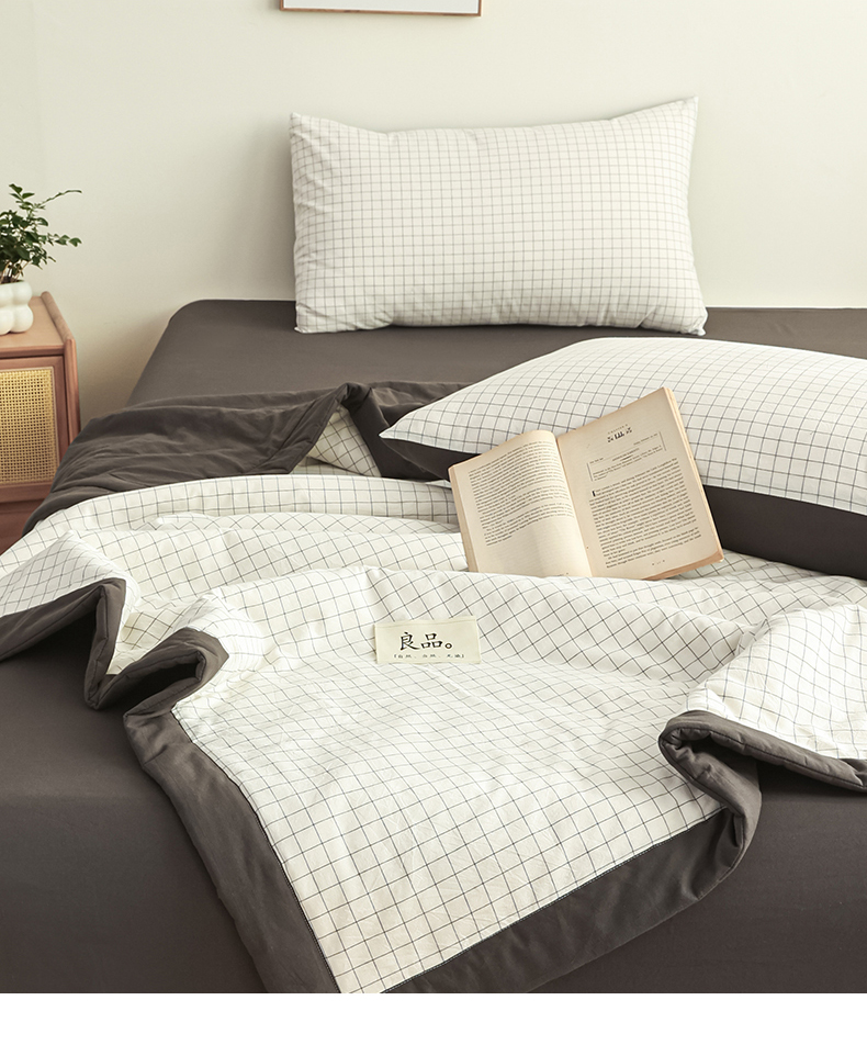 尊妙被业 2026全棉色织水洗全棉棉花夏被 被子被芯 夏被四件套(格子款) 潮格白