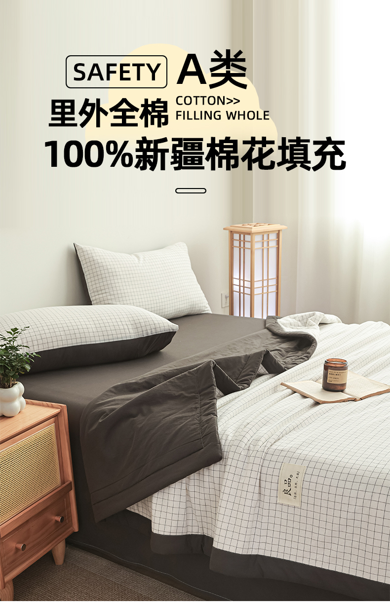 • 91家纺网 家纺一手货源 找家纺 尊妙被业 2026全棉色织水洗全棉棉花夏被 被子被芯 夏被四件套(格子款) 潮格白