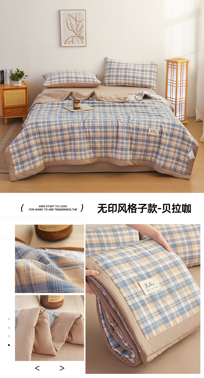 • 91家纺网 家纺一手货源 找家纺 (总)尊妙被业 2026全棉色织水洗全棉棉花夏被 被子被芯 夏被四件套(格子款),贝拉咖,爱格,爱格兰,爱格绿,潮格白,粉小格,咖小格,蓝小格,绿小格