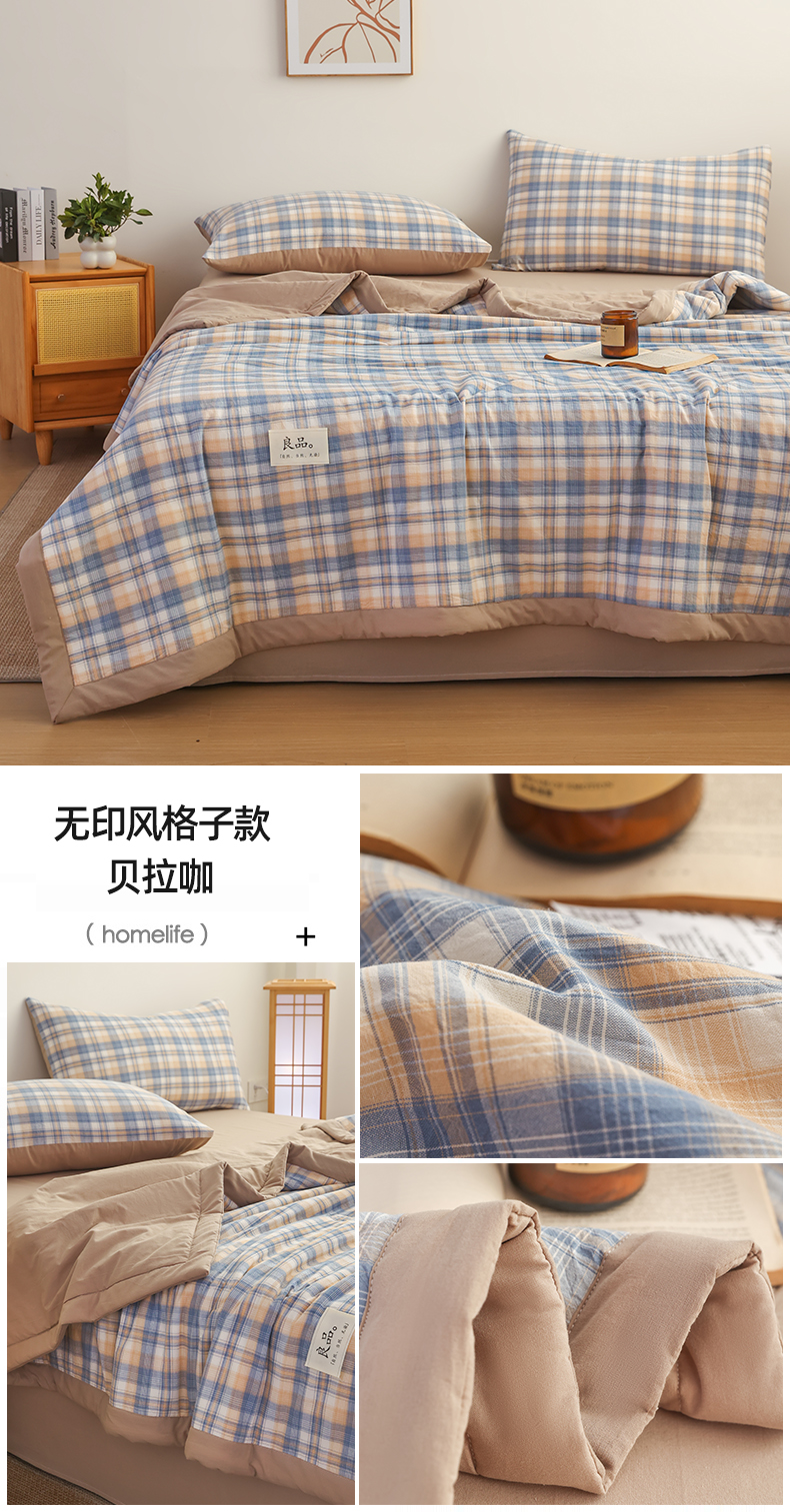 (总)尊妙被业 2026全棉色织水洗全棉棉花夏被 被子被芯 夏被四件套(格子款),贝拉咖,爱格,爱格兰,爱格绿,潮格白,粉小格,咖小格,蓝小格,绿小格