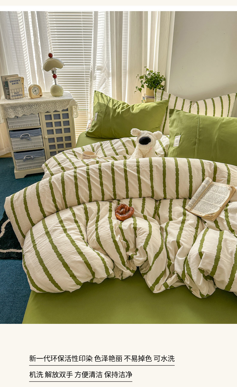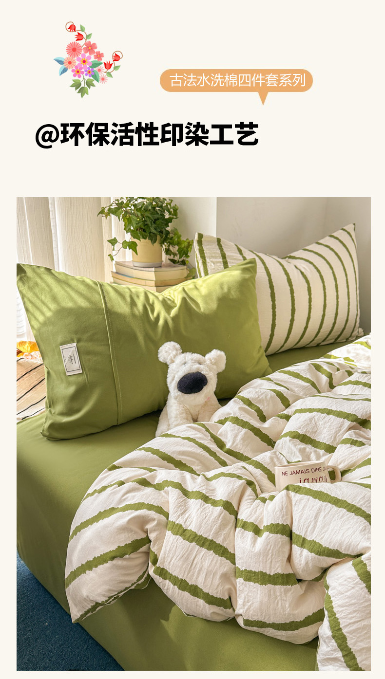当前位置: 91家纺网 > 商品网购 > 床品套件 > 四件套 > 水洗棉四件套 > 上尚居 2026新款简约印花古法水洗棉四件套-摩卡 摩卡-绿