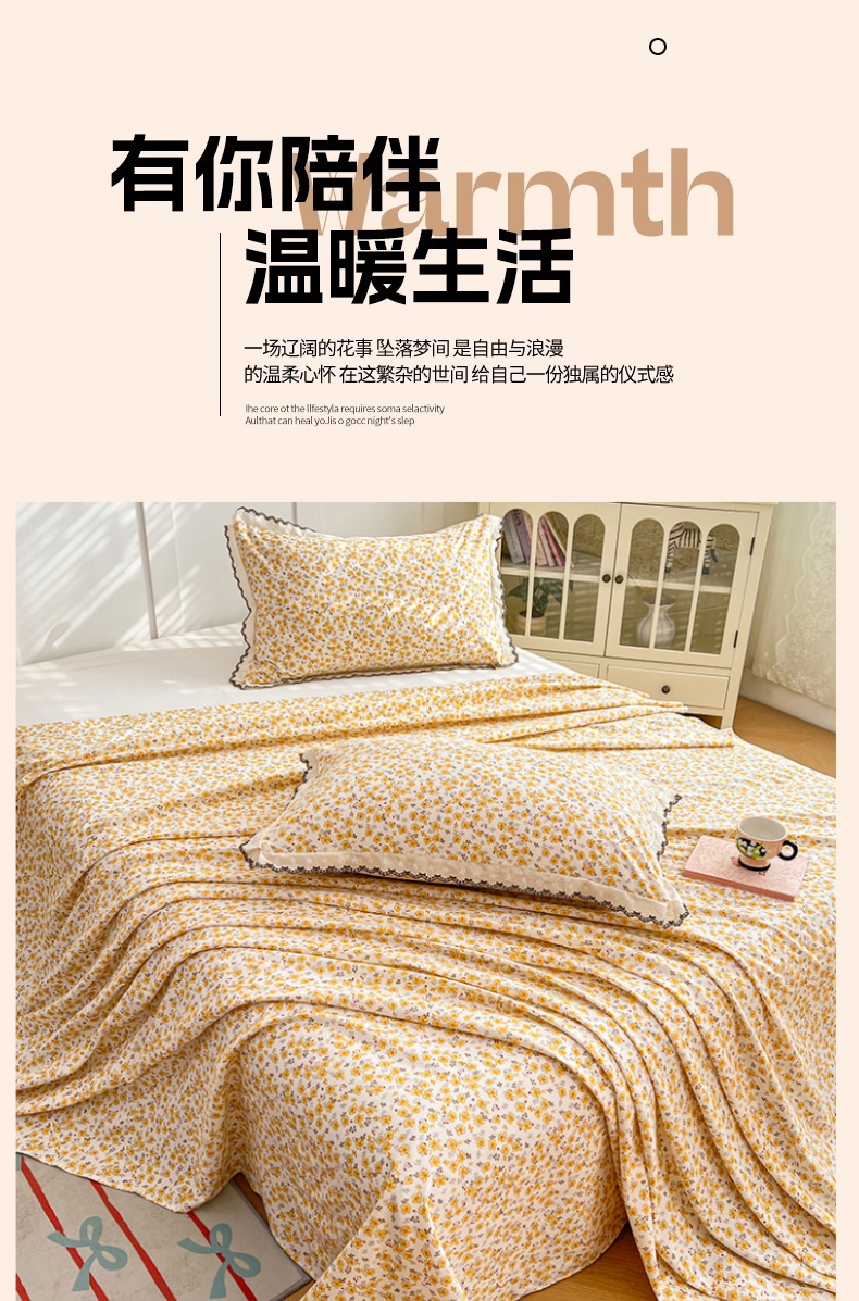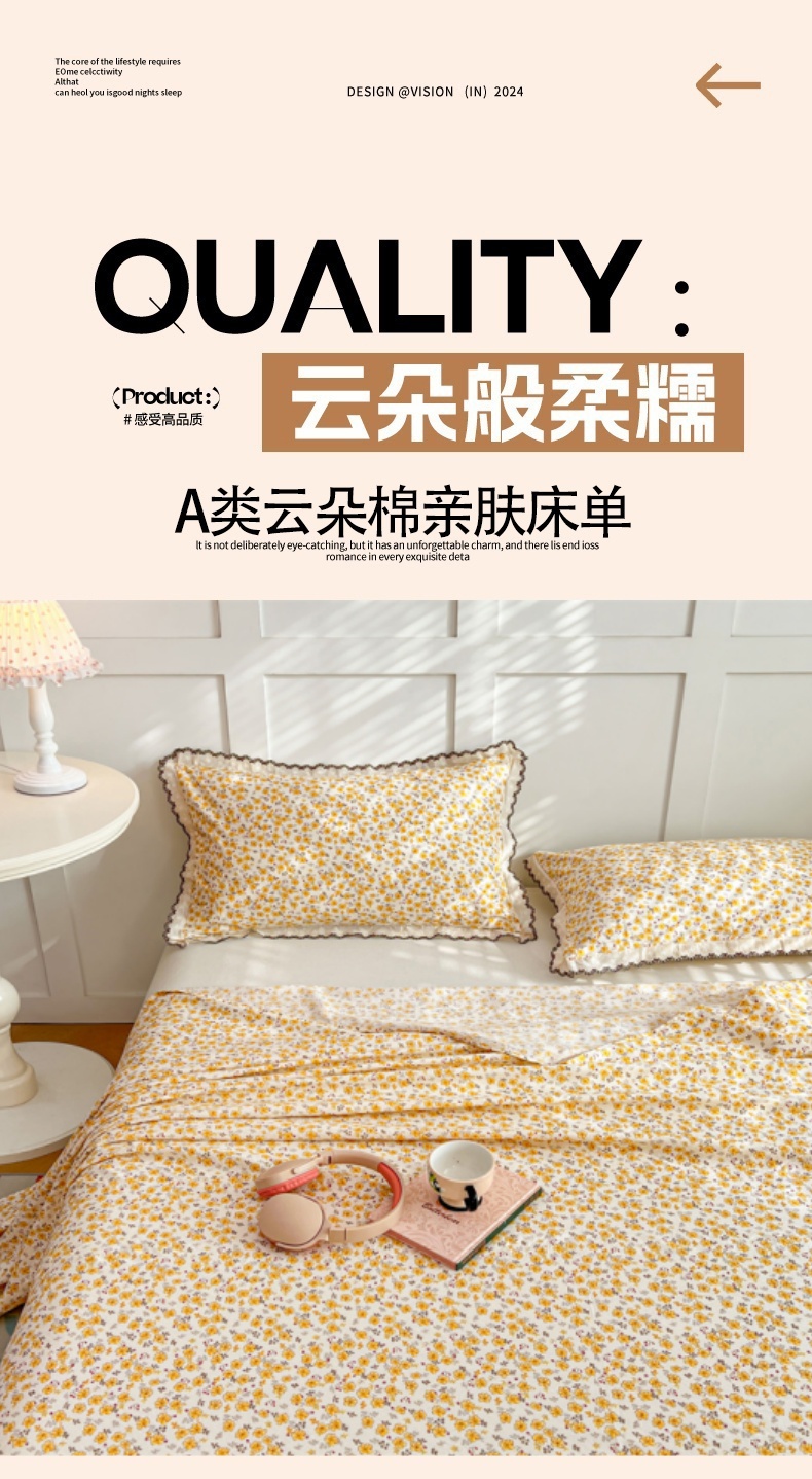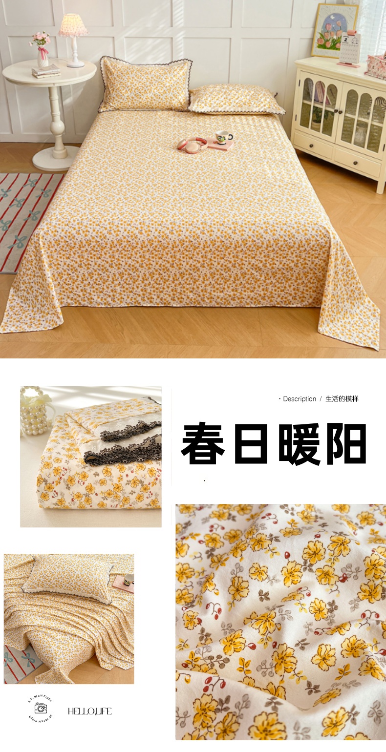 • 91家纺网 家纺一手货源 找家纺 梦舒羽 2026新款A类云朵棉床单亲肤四季款席梦思床罩全包床单三件套 春日暖阳