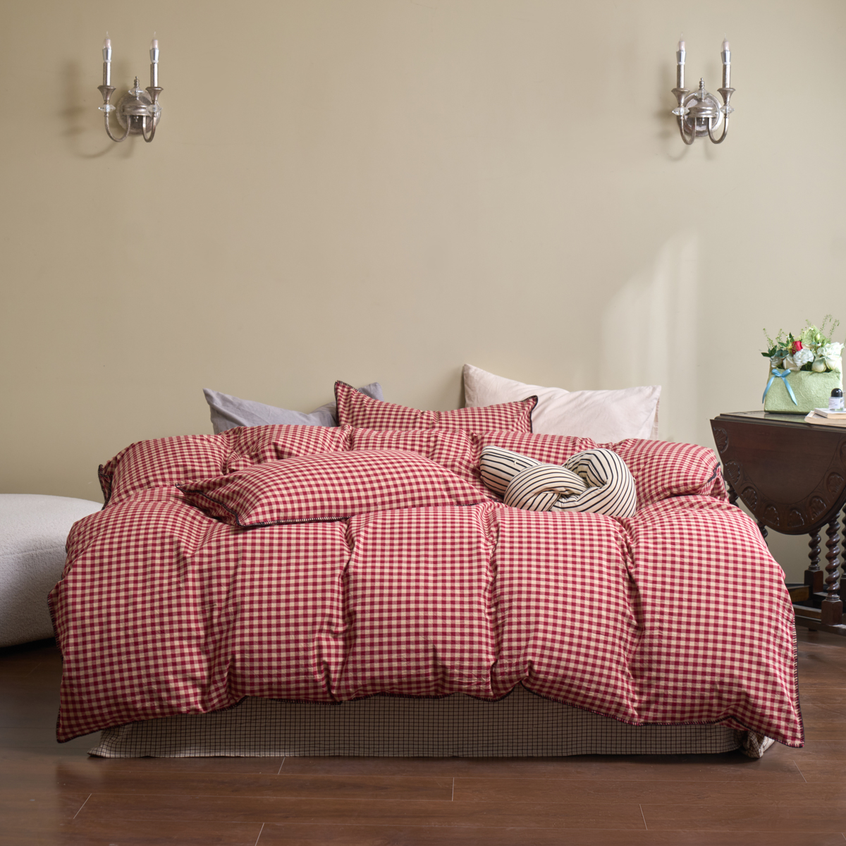(总)洋铭区 2022新款双色棋盘格四件套,庄园橙格,庄园粉格,庄园咖格,庄园蓝格