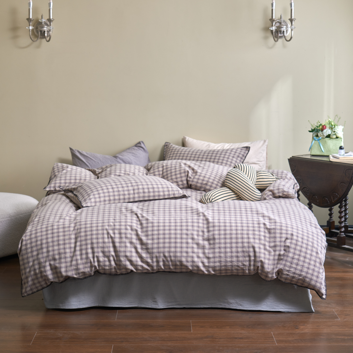 (总)洋铭区(原狠狠爱) 2026新款色织水洗棉一字边四件套系列,朵拉粉格,朵拉咖格,朵拉绿格,翡翠绿格,风雅蓝格,枫叶红格,红茶格,山宇灰格,杏仁米格,烟幕黑格,烟幕蓝格,烟幕棕格,组合