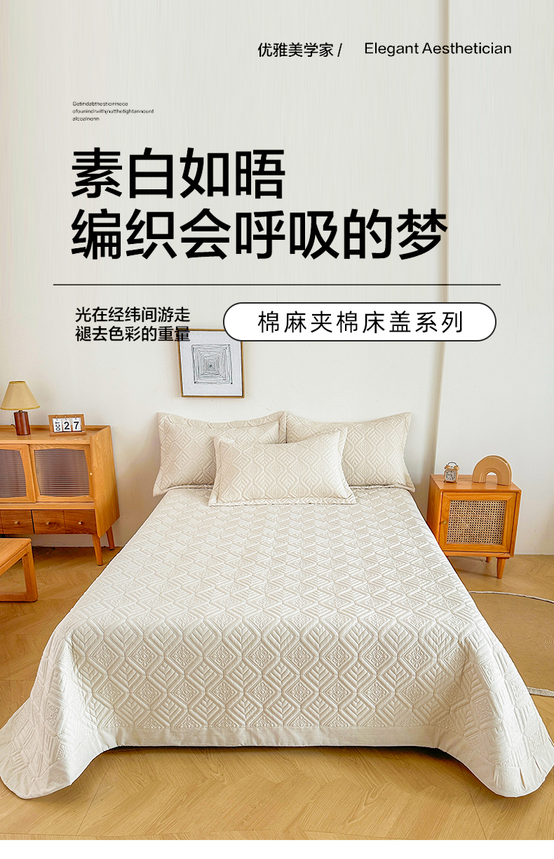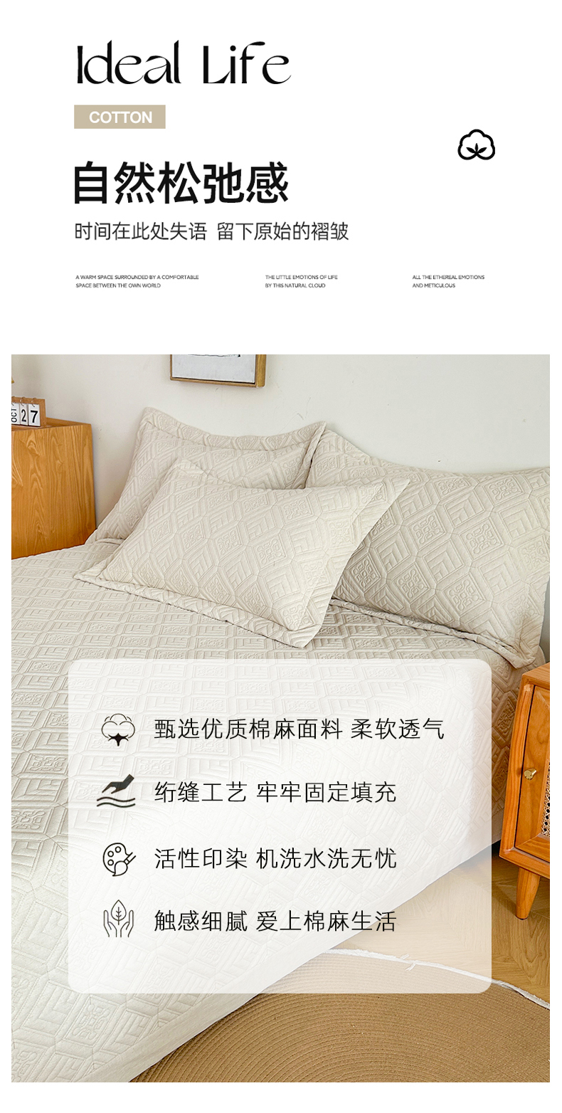 商品名称:(总)欧夏家纺 2026新款欧式棉麻床盖三件套夹棉床盖床护垫