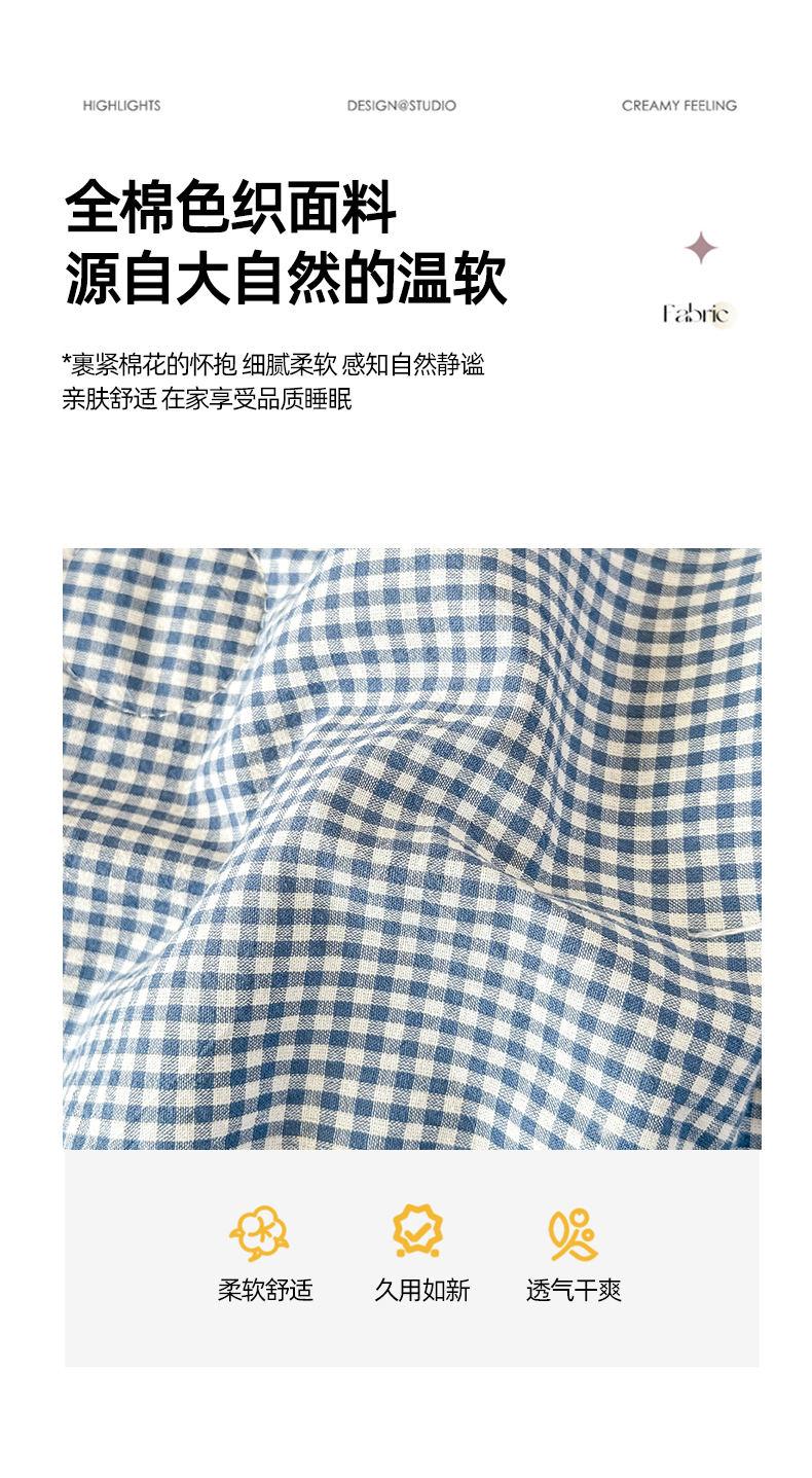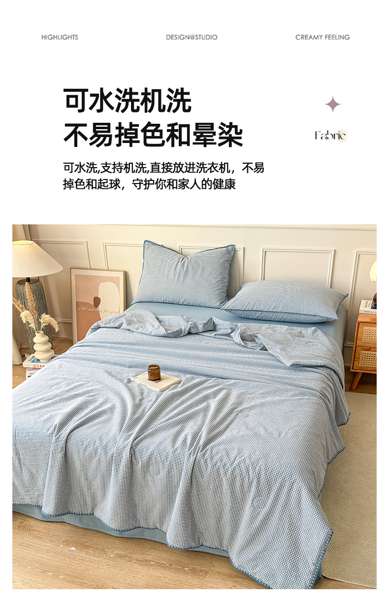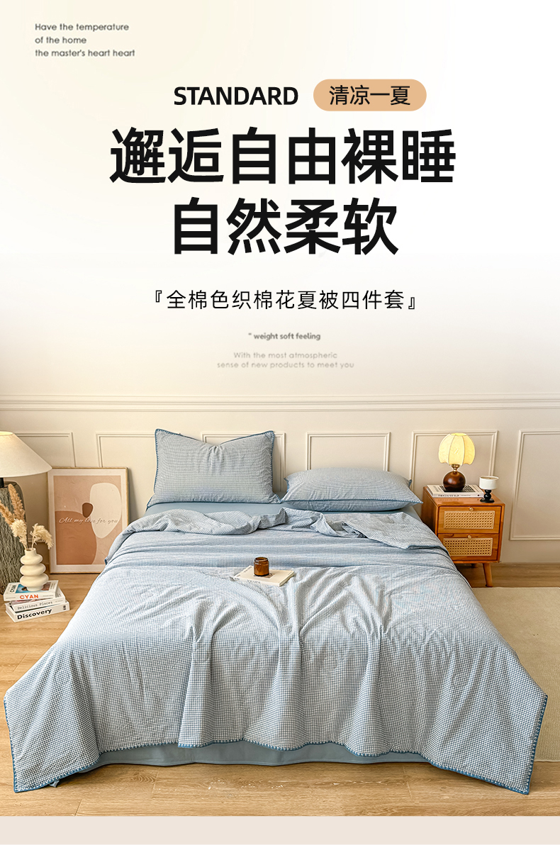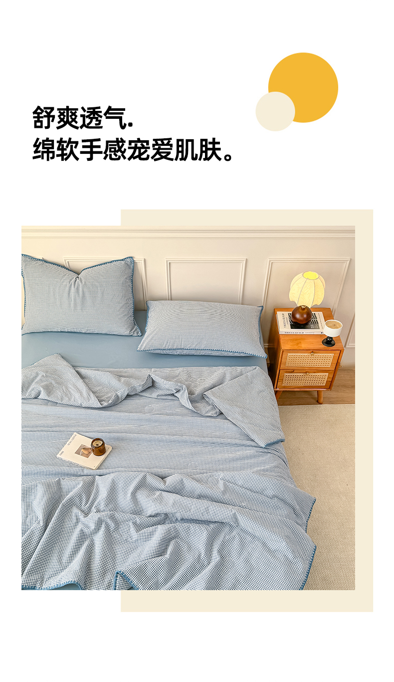 (总)鸣升家纺 2026新款全棉色织水洗棉贝壳边棉花空调被夏凉被夏被四件套,果绿,姜黄,莎粉,天空蓝,月光灰,组合图仅供参考不可下单