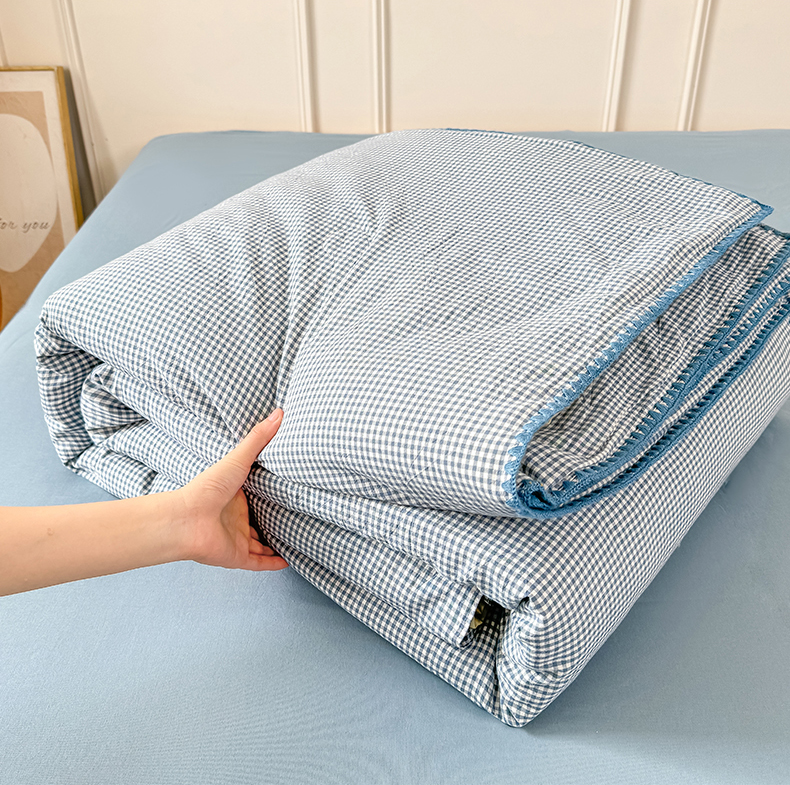 当前位置: 91家纺网 > 商品网购 > 被子 > 夏被 > 鸣升家纺 2026新款全棉色织水洗棉贝壳边棉花空调被夏凉被夏被四件套 天空蓝