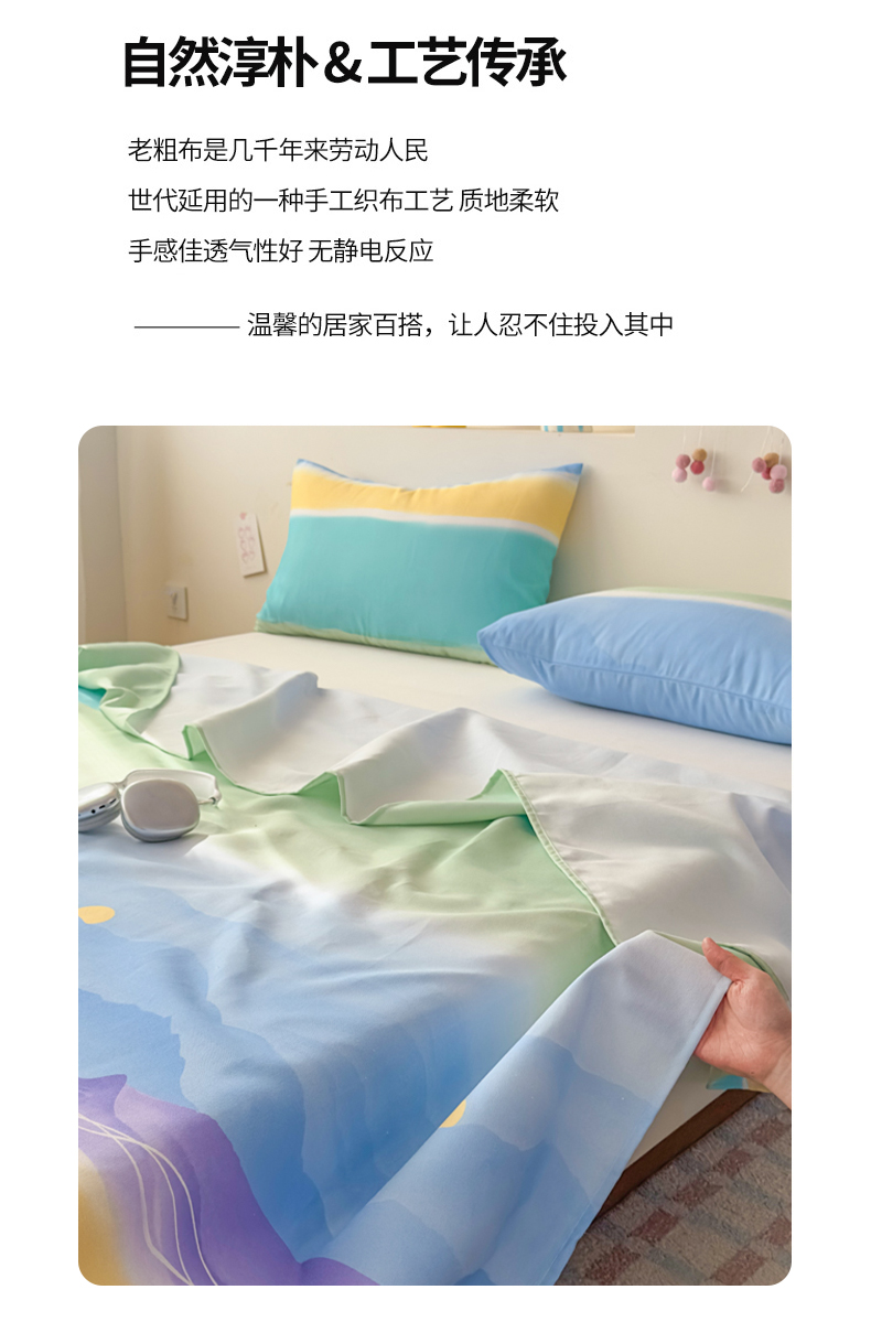 (总)爱彼家纺 2026新款升级细沙印花老粗布床单单品床单床单单件-细沙系列四,花笺,花漾手礼,花屿南瓜,蓝花序,蓝菊绘,山河日立,甜心