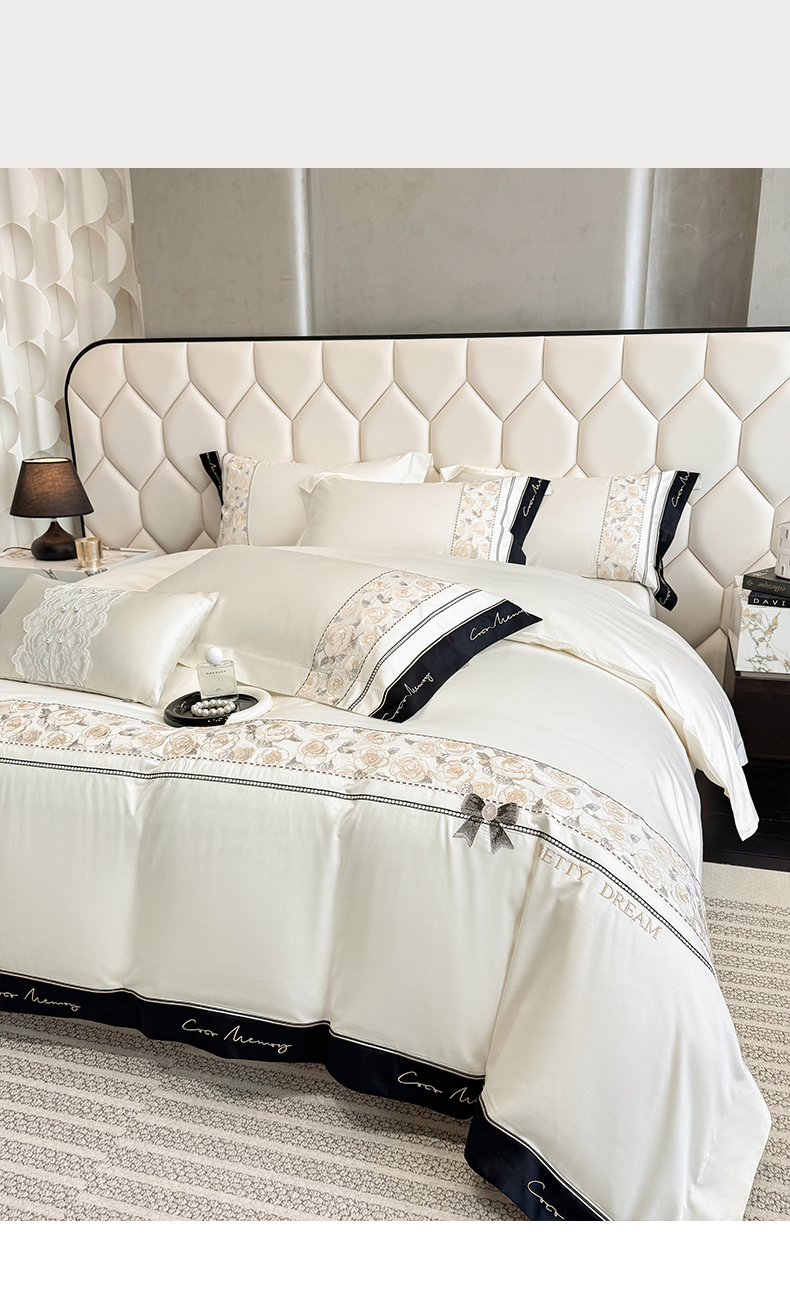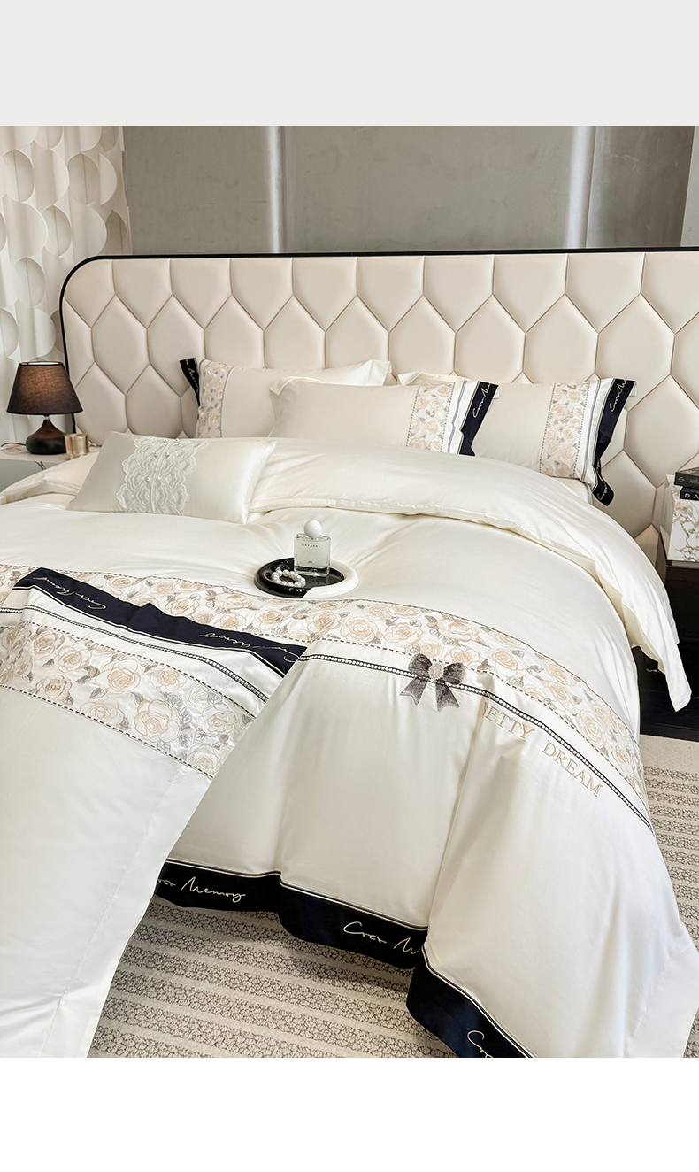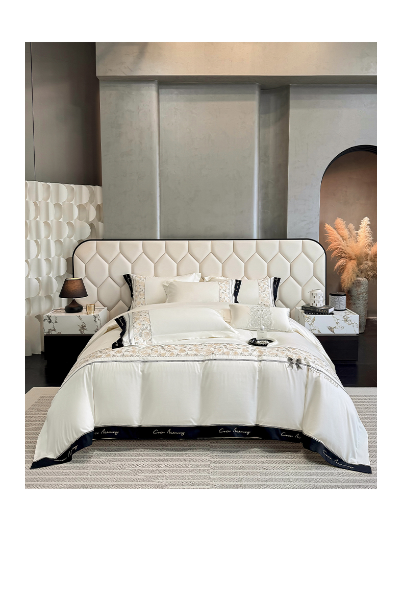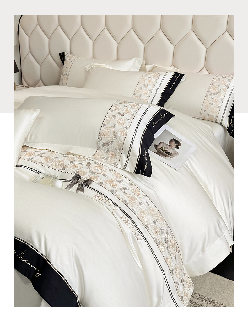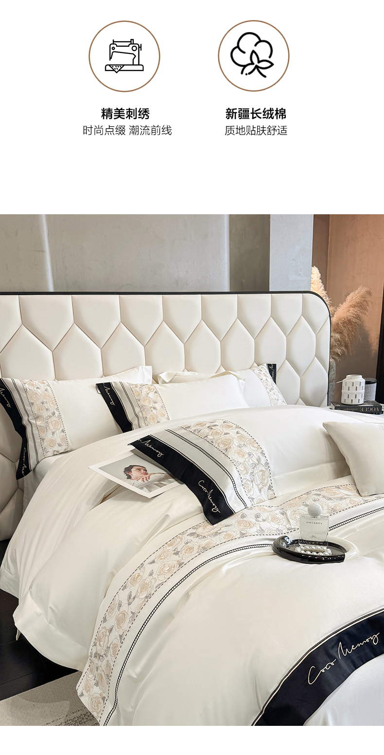 欣宜家纺 2026春夏新款60支A类新疆长绒棉刺绣全棉四件套纯棉床品套件 玛丽-奶白