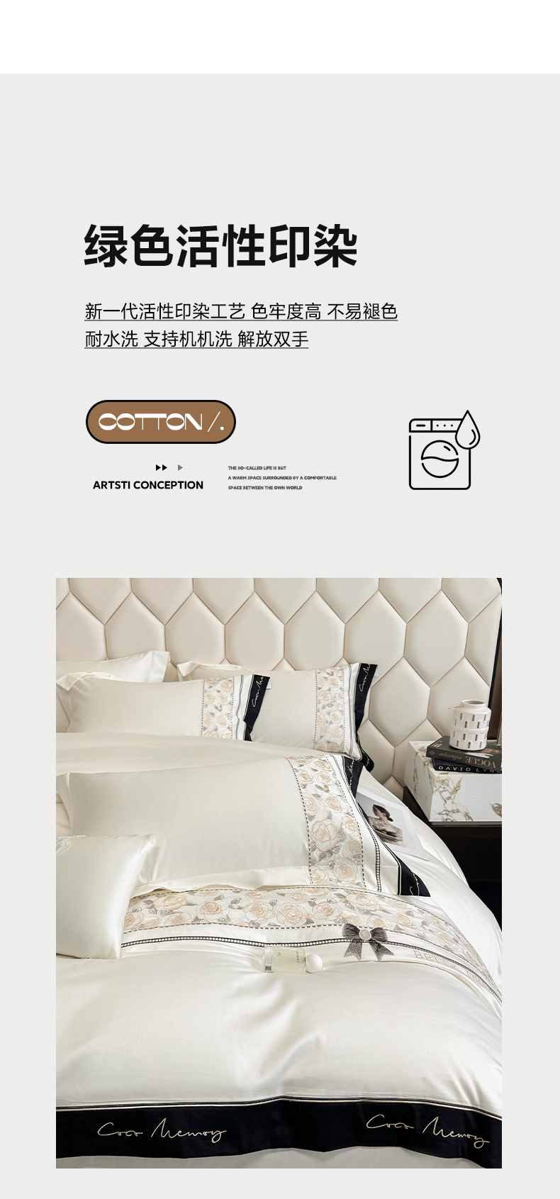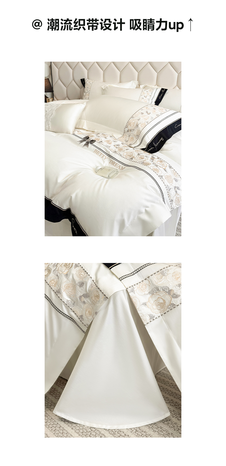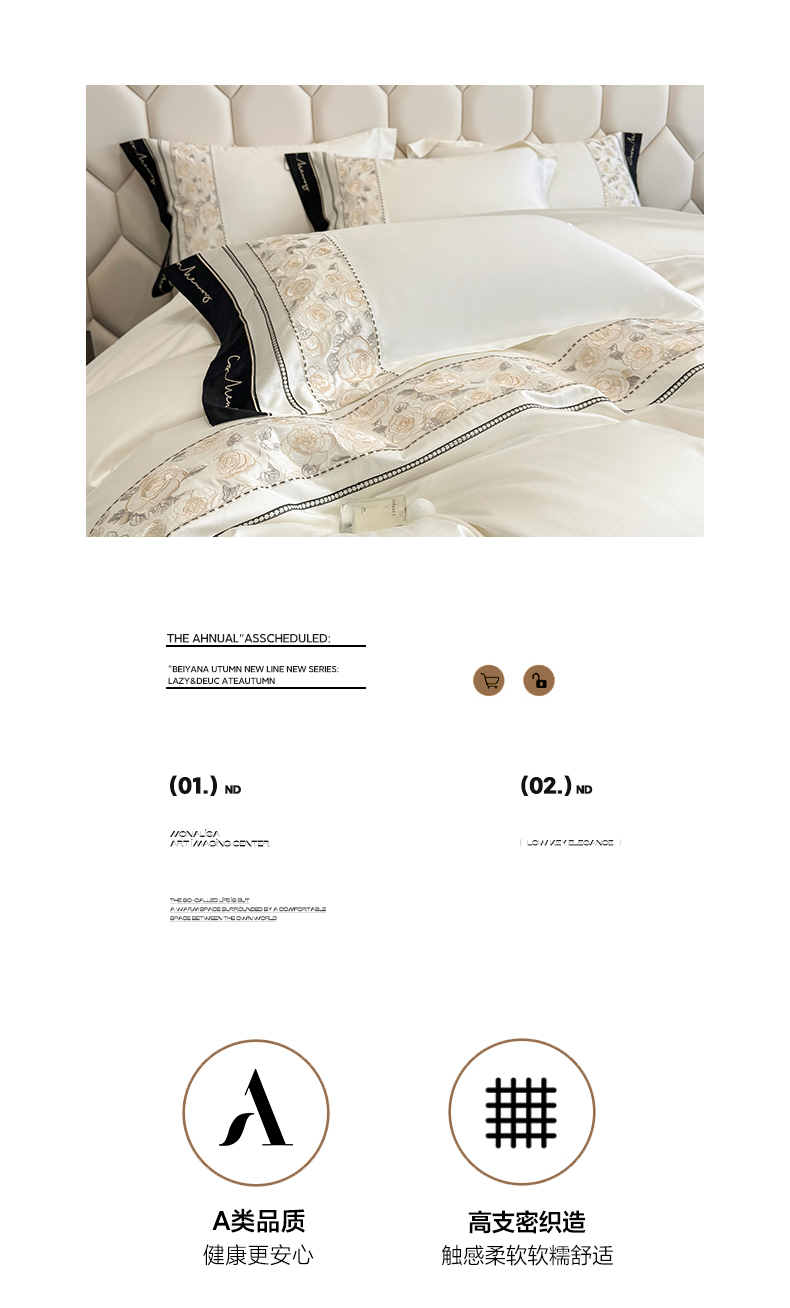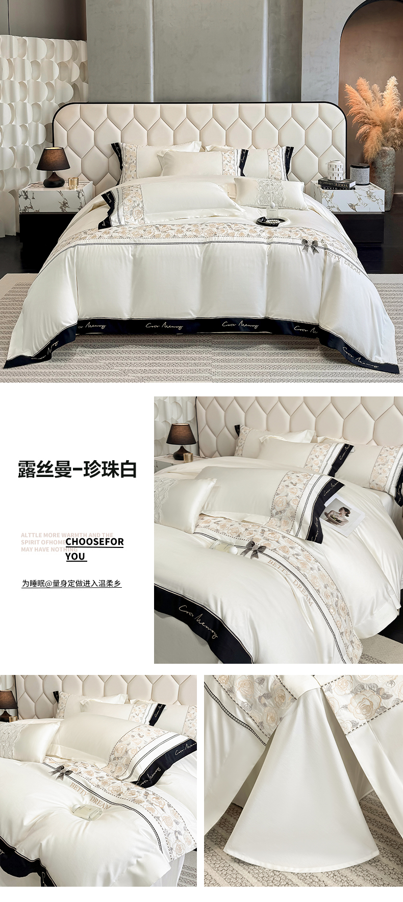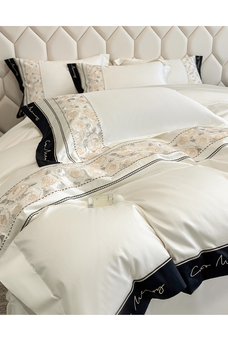 欣宜家纺 2026春夏新款60支A类新疆长绒棉刺绣全棉四件套纯棉床品套件 玛丽-奶白