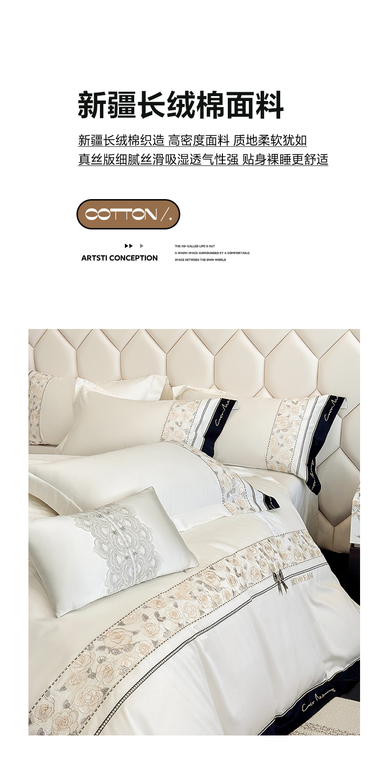 商品名称:欣宜家纺 2026春夏新款60支A类新疆长绒棉刺绣全棉四件套纯棉床品套件 玛丽-奶白