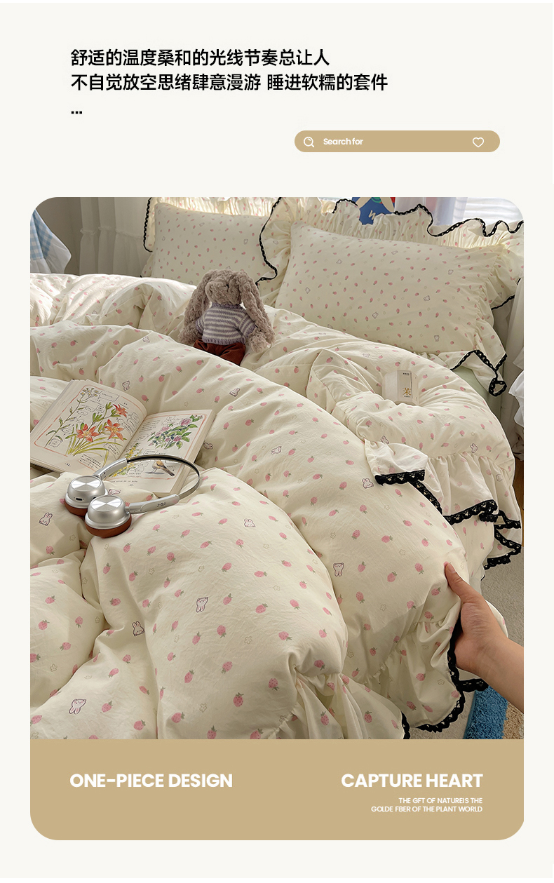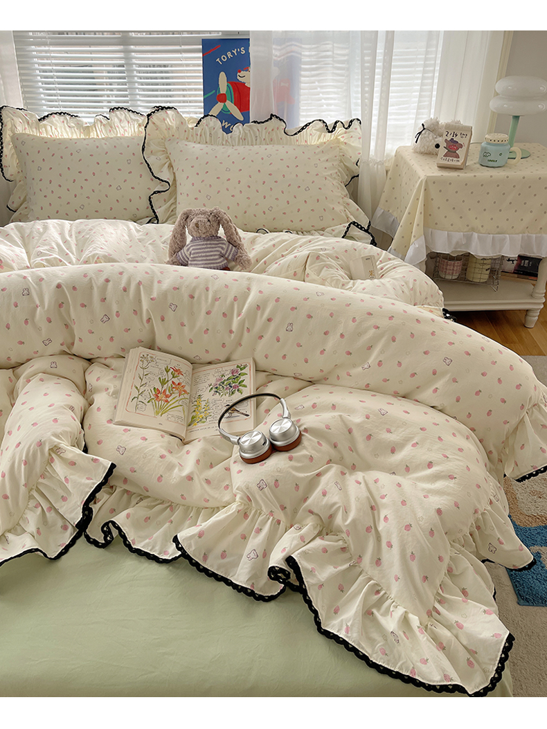 当前位置: 91家纺网 > 商品网购 > 床品套件 > 四件套 > 水洗棉四件套 > 三朵家纺 2026新款云柔水洗棉大花边A类韩版四件套 草莓兔