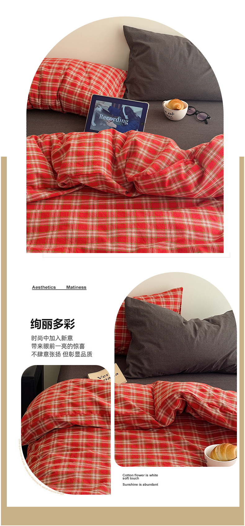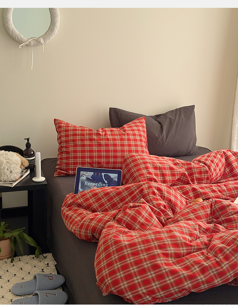 当前位置: 91家纺网 > 商品网购 > 床品套件 > 四件套 > 全棉普通四件套 > 三朵家纺 2026新款复古简约格子混搭全棉纯棉色织水洗棉四件套 红格