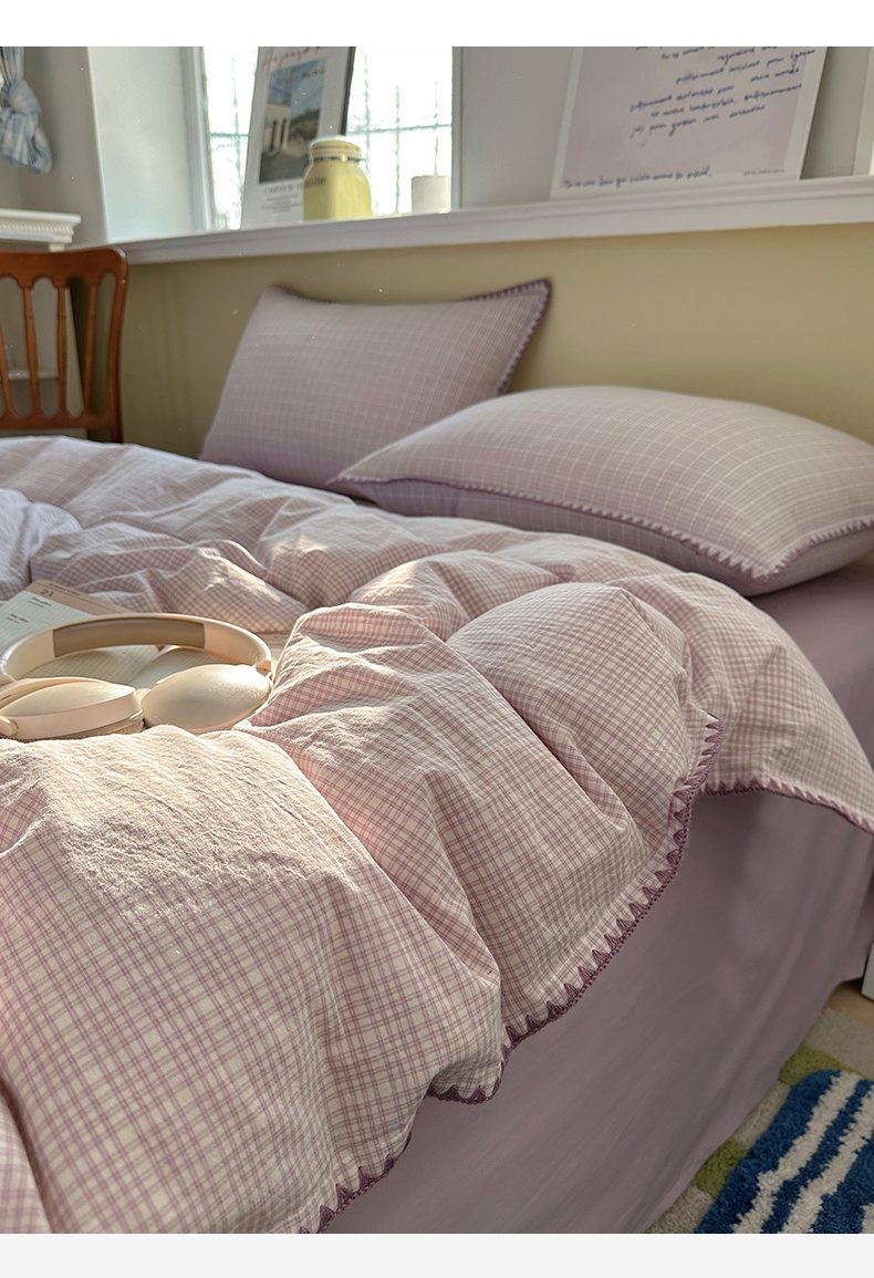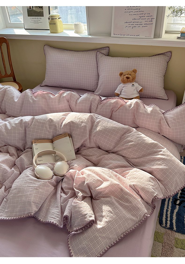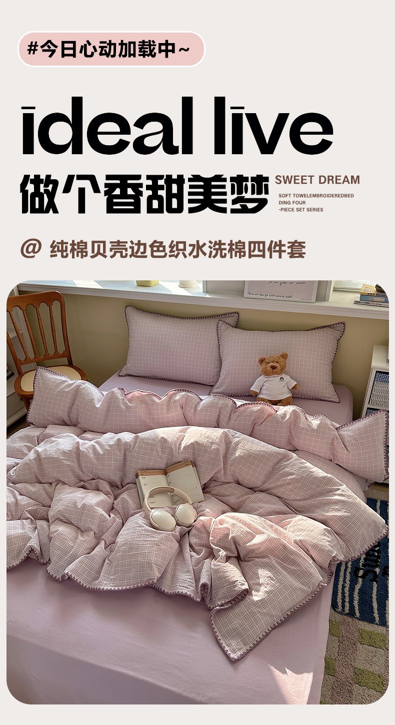 当前位置: 91家纺网 > 商品网购 > 床品套件 > 四件套 > 全棉普通四件套 > XIWEN-希文家纺 2026新款40支全棉色织水洗棉贝壳边四件套 叙白-紫