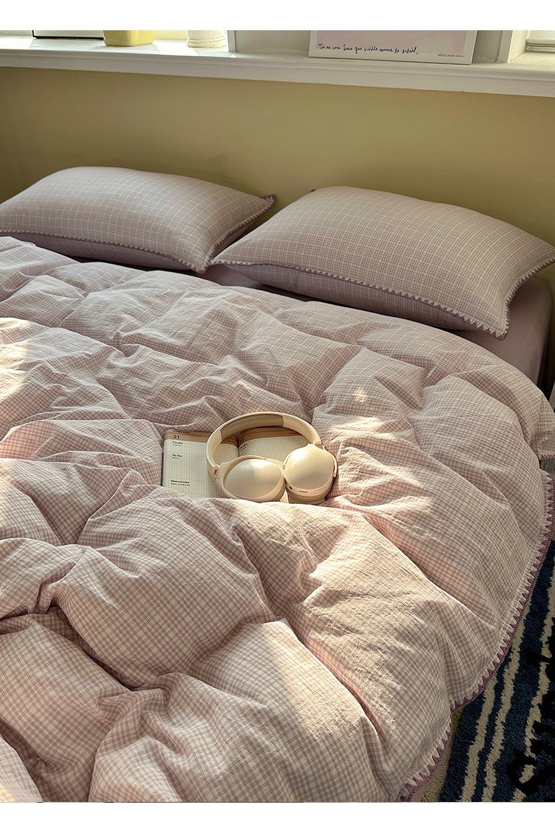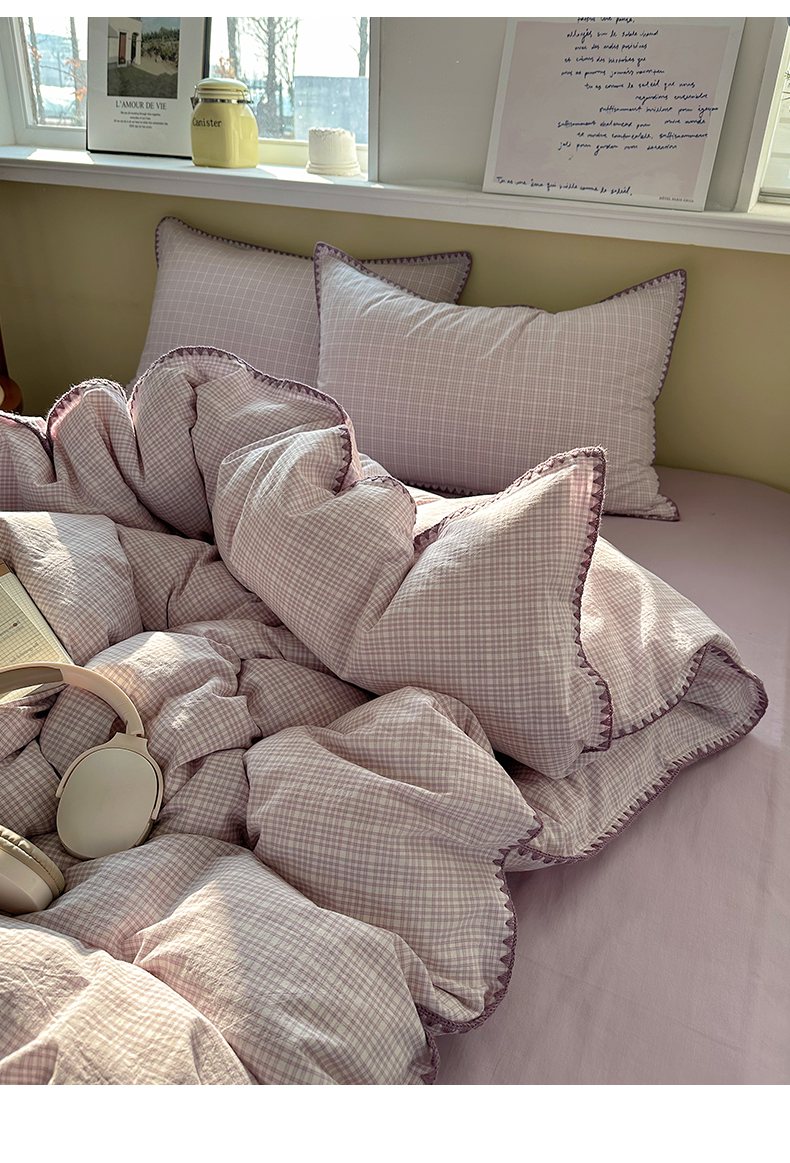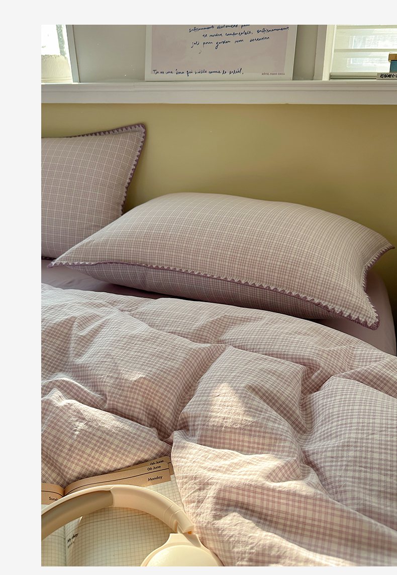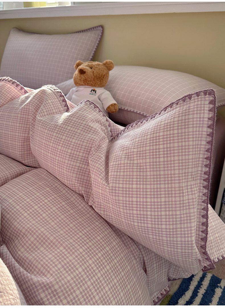 当前位置: 91家纺网 > 商品网购 > 床品套件 > 四件套 > 全棉普通四件套 > XIWEN-希文家纺 2026新款40支全棉色织水洗棉贝壳边四件套 叙白-紫